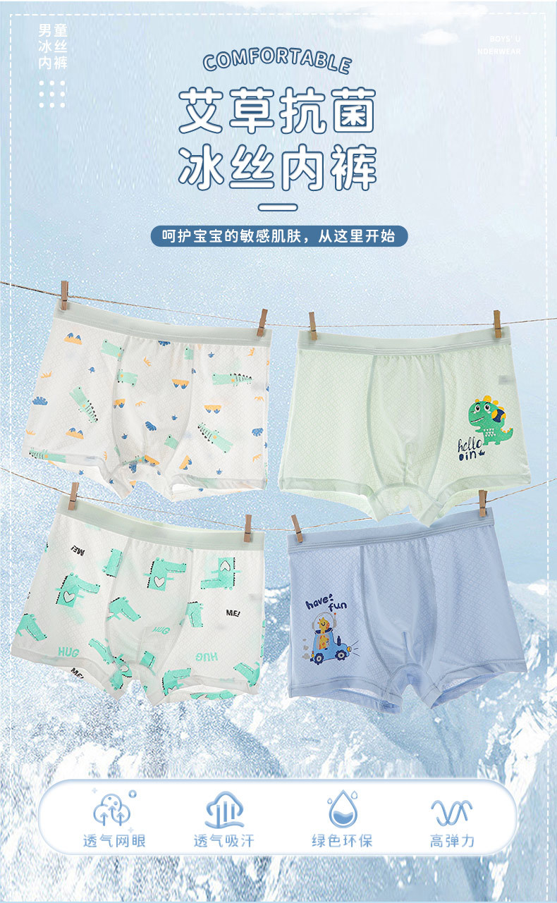 소년 속옷 아이스 실크 여름 어린이 사각 아기 소년을위한 항균 메쉬 얇은 크기 어린이 사각 반바지스토어 가기