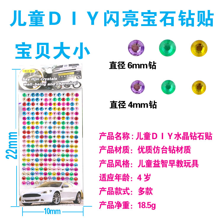 0.6 큰 260 어린이 다이아몬드 스티커 DIY 모조 다이아몬드 스티커 자동차 장식 스티커 크리스탈 컬러 다이아몬드 휴대 전화 스티커