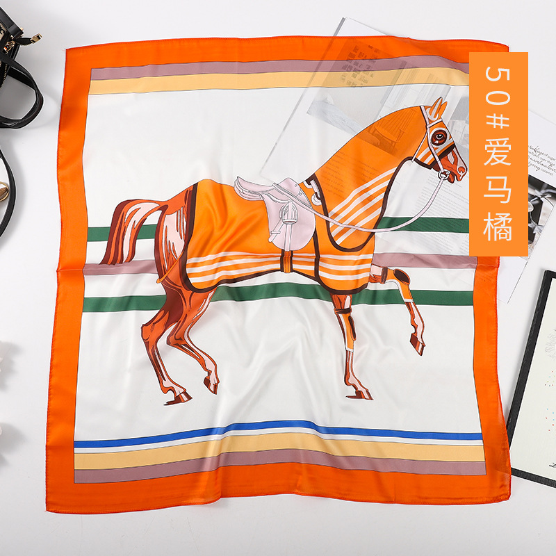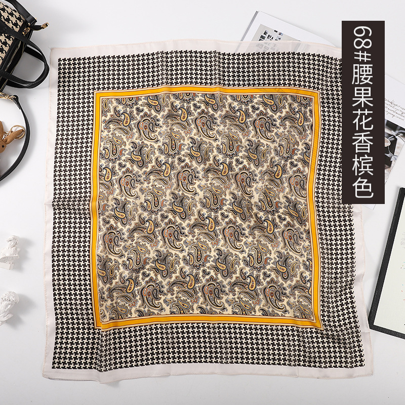 70 작은 사각형 스카프 여성 봄/여름 2024 새로운 복고풍 인쇄 새틴 스카프 전문 스카프 목도리 도매