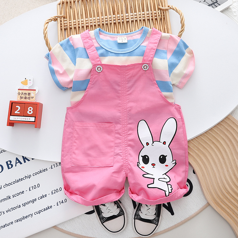 아동복 남아 여름 세트 2023 새로운 줄무늬 1-3 세 5 아기 여름 착용 반팔 스트랩 투피스 유행 어린이 세트