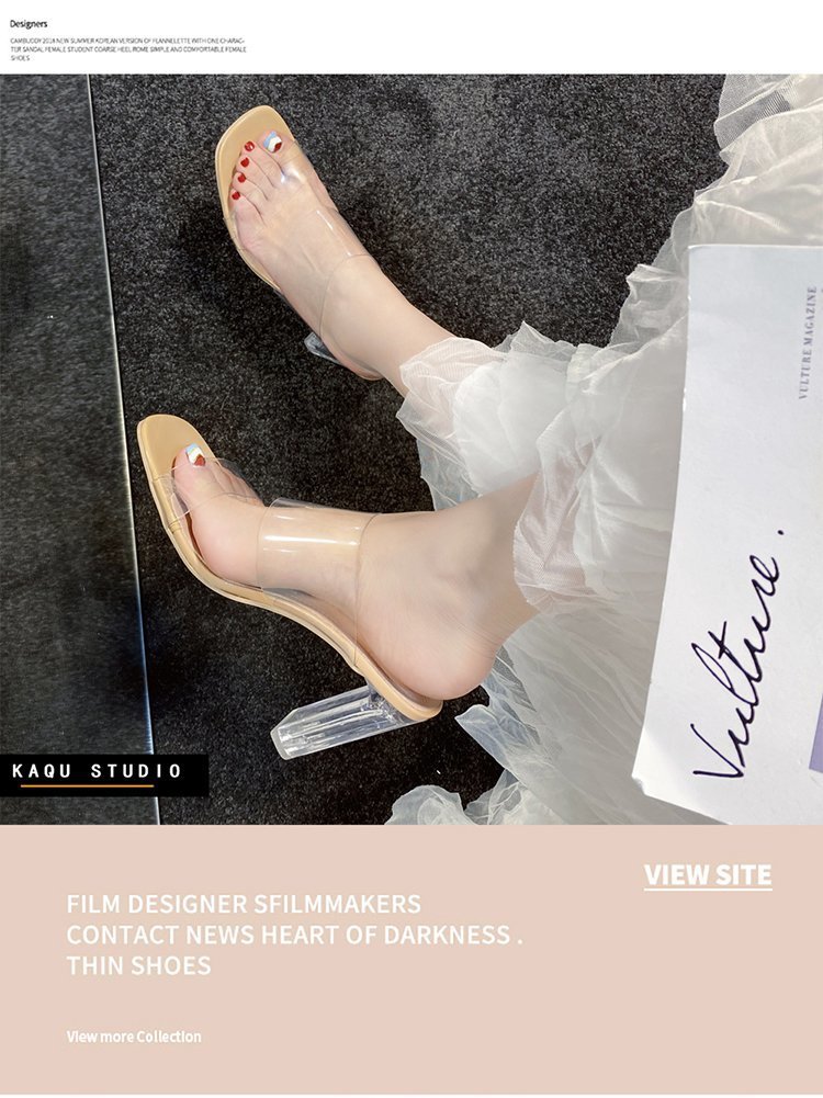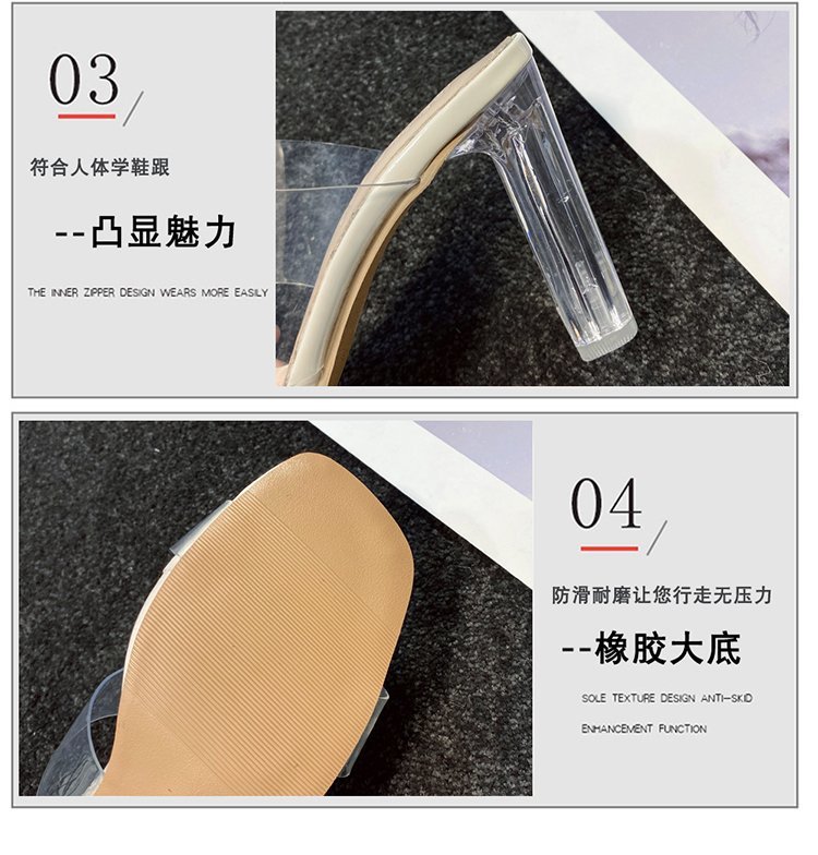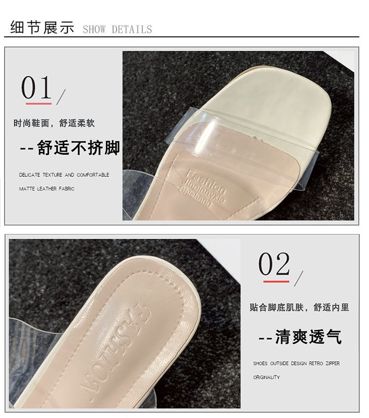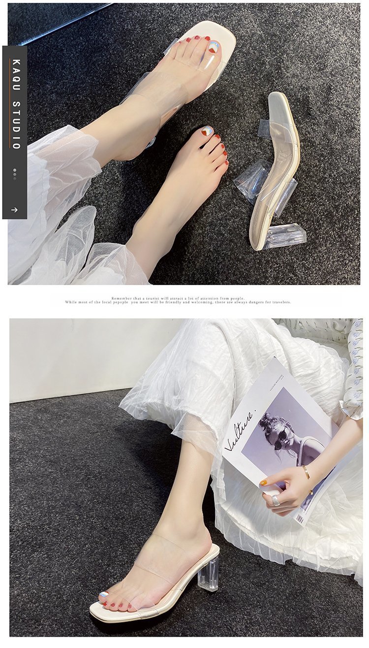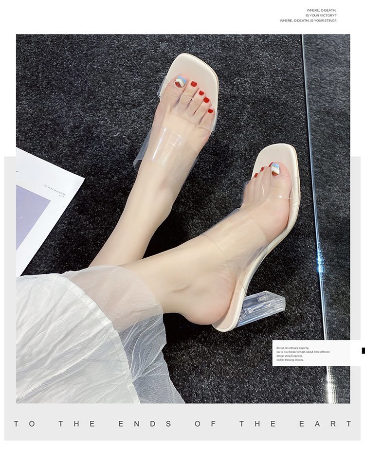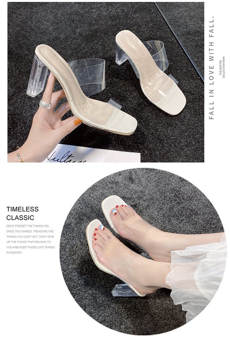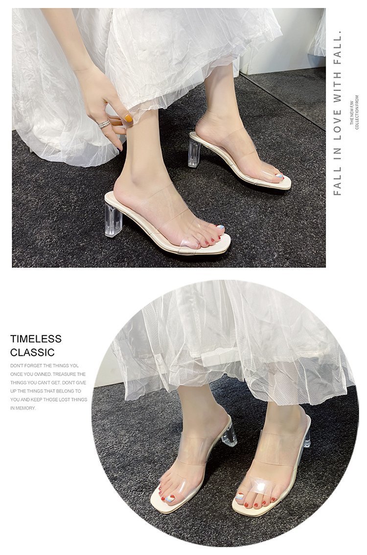 두꺼운 발 뒤꿈치 야외용 샌들 및 슬리퍼 2020 년 여름 하이힐 투명 슬리퍼 크리스탈 힐 하프 슬라이드 샌들 및 슬리퍼 여성용스토어 가기