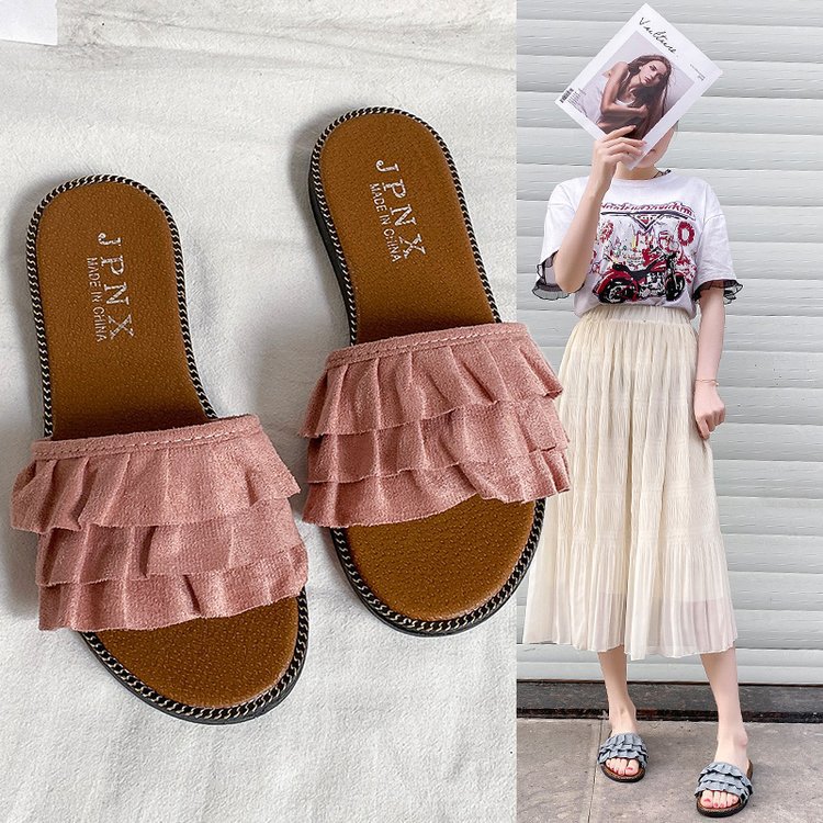 플러스 사이즈 플랫 슬리퍼 여자의 2023 여름 새로운 오픈 발가락 레이스 비치 여자의 샌들 도매