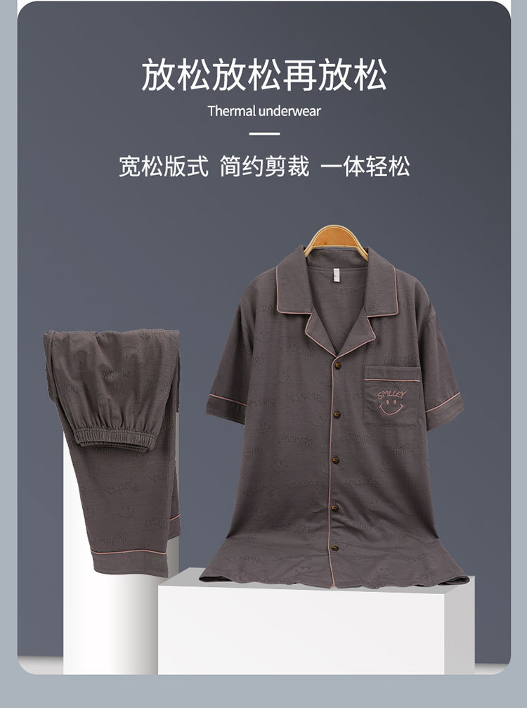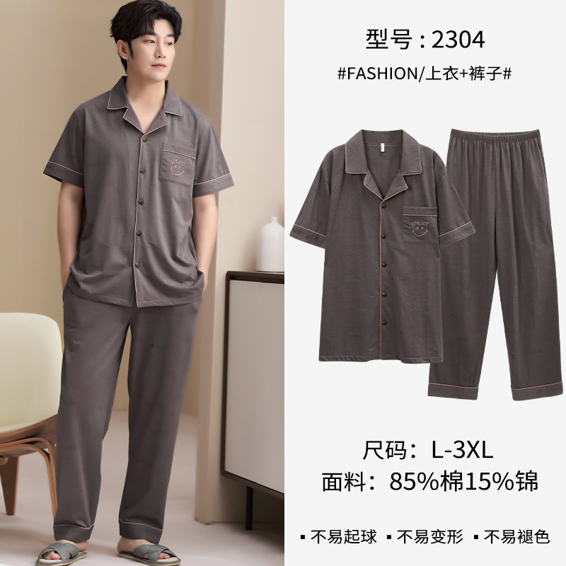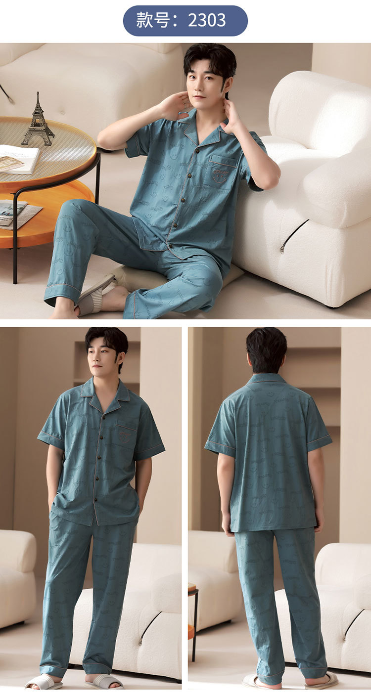 순수 코튼 잠옷 남성 한국 스타일 여름 반팔 바지 캐주얼 루즈 대형 청소년 코튼 홈 의류 외부 착용 가능스토어 가기