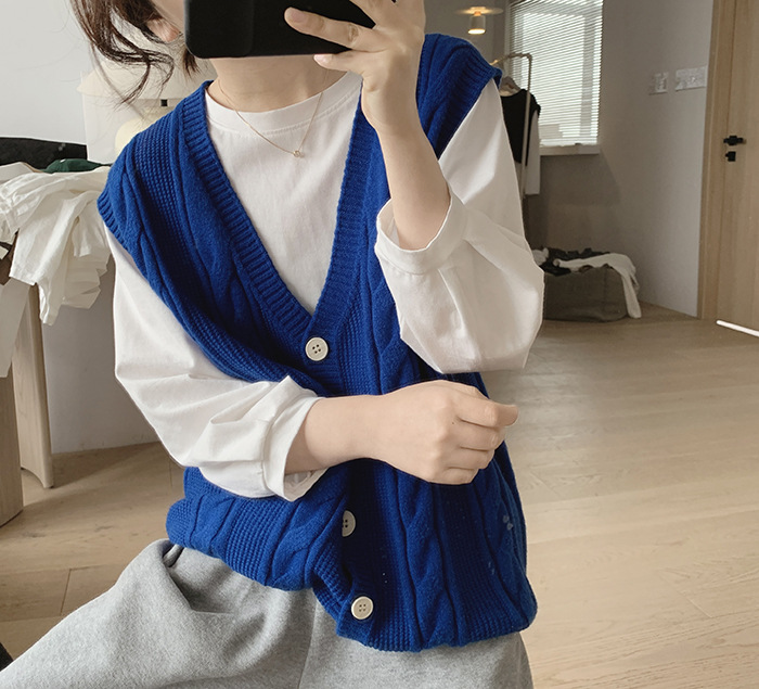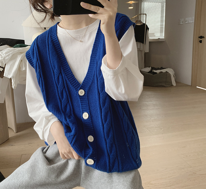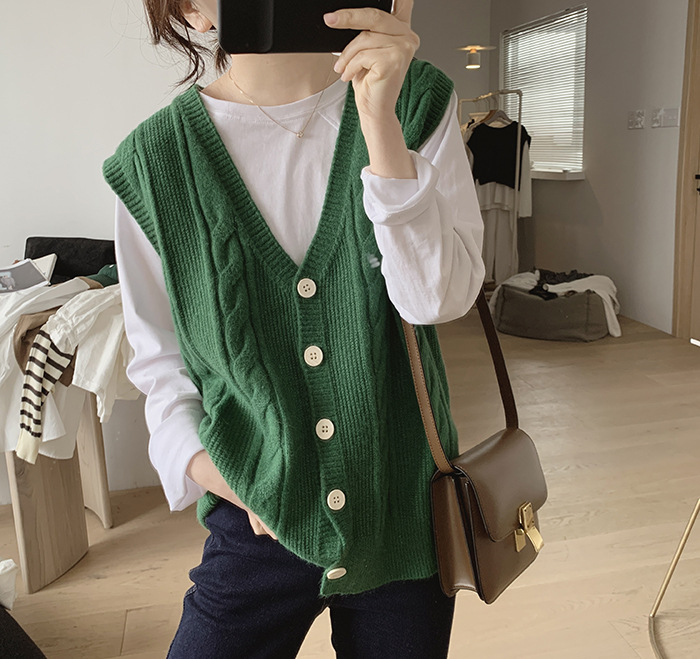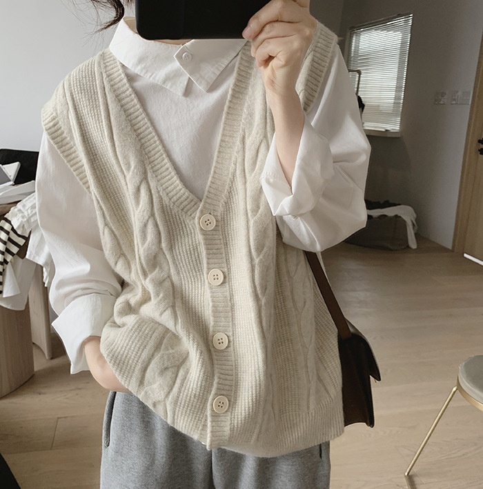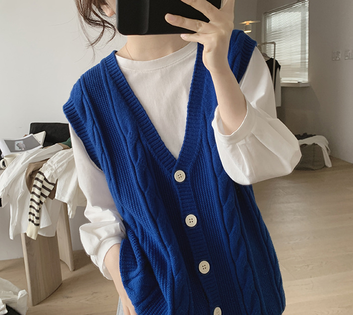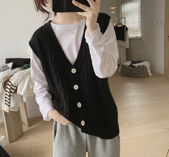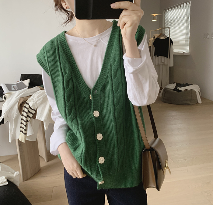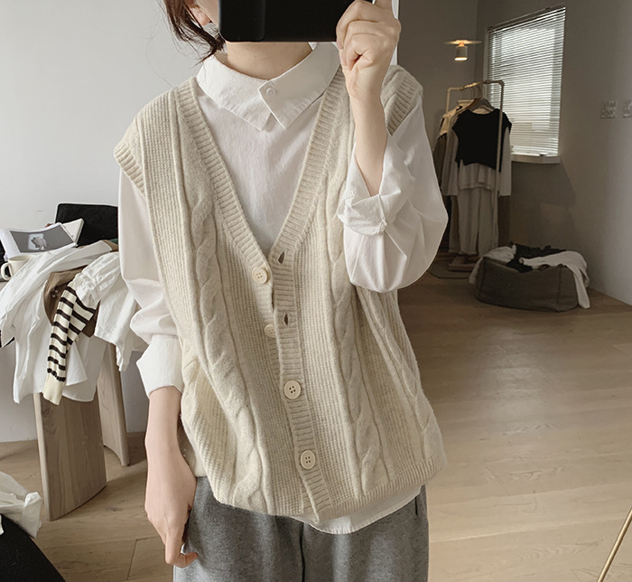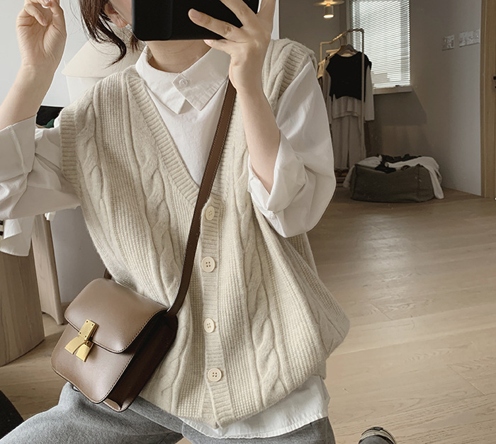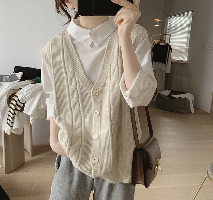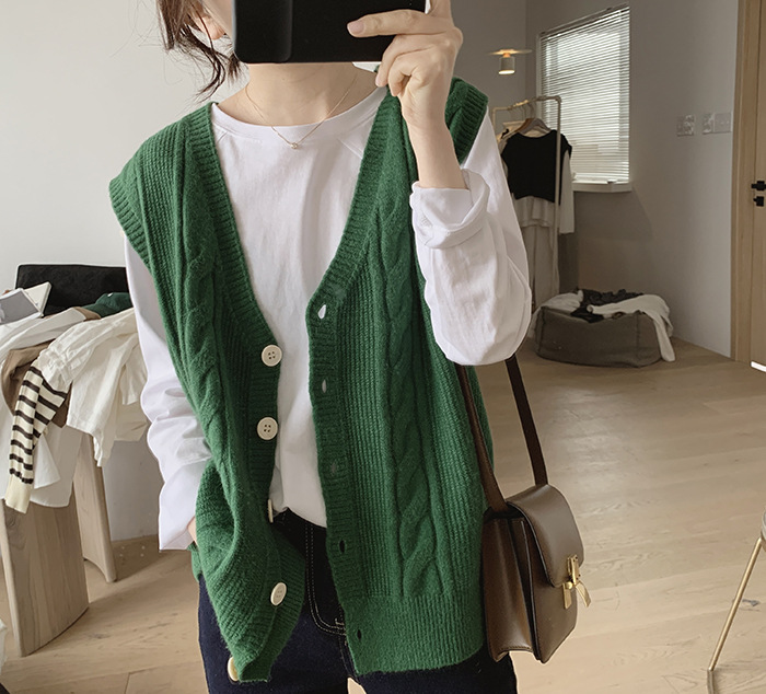 민소매 니트 조끼 초봄 가을 2024 새로운 폭발 여성 트위스트 스택 웨이스트 코트 스웨터 카디건스토어 가기