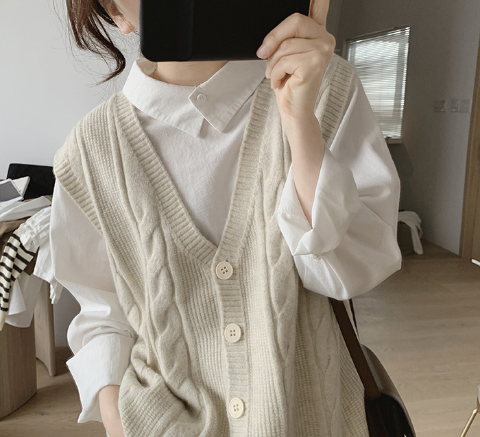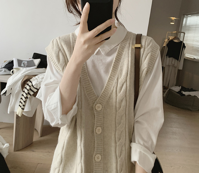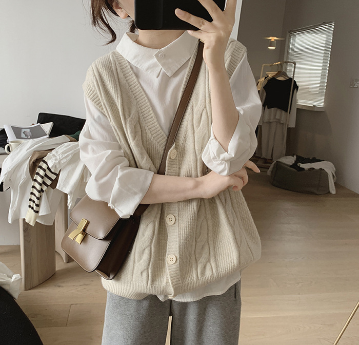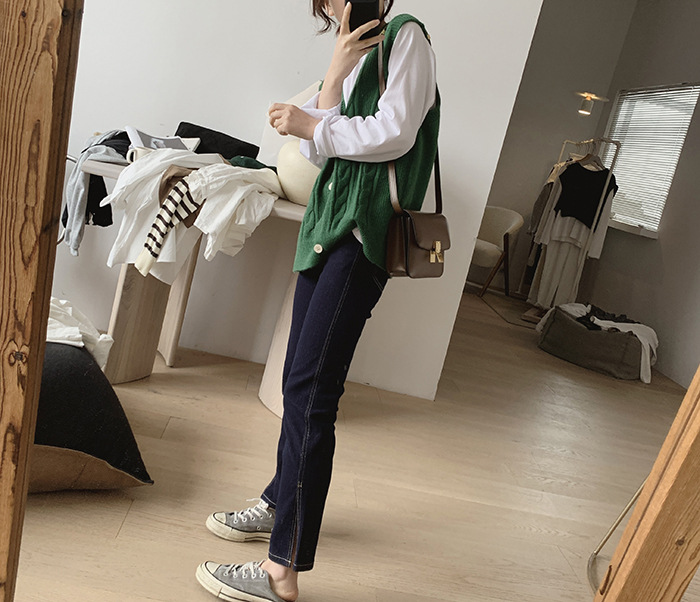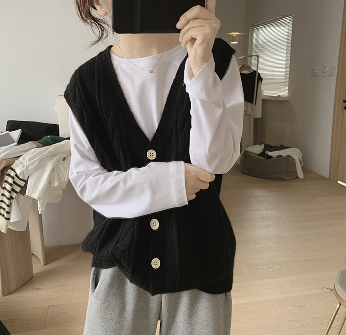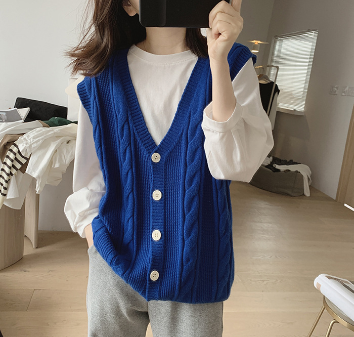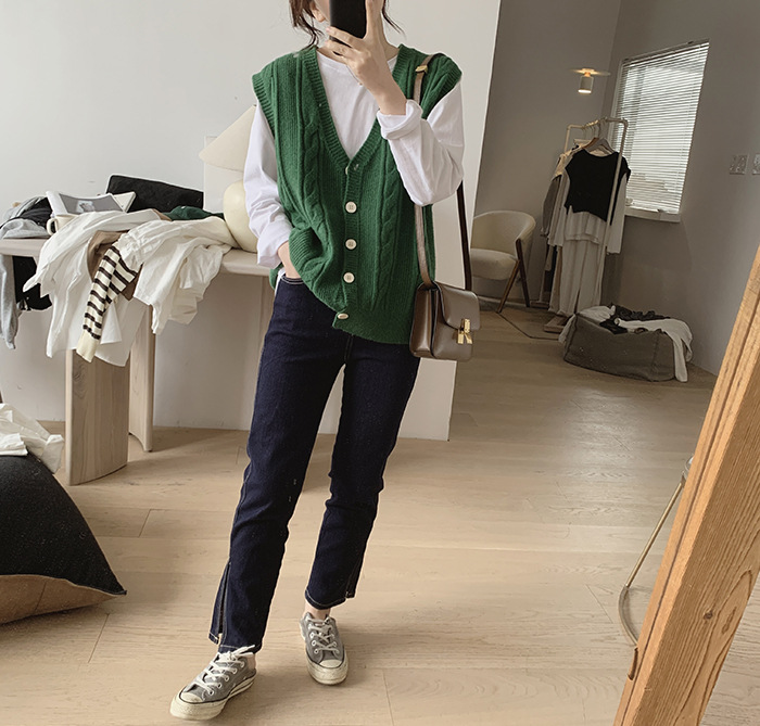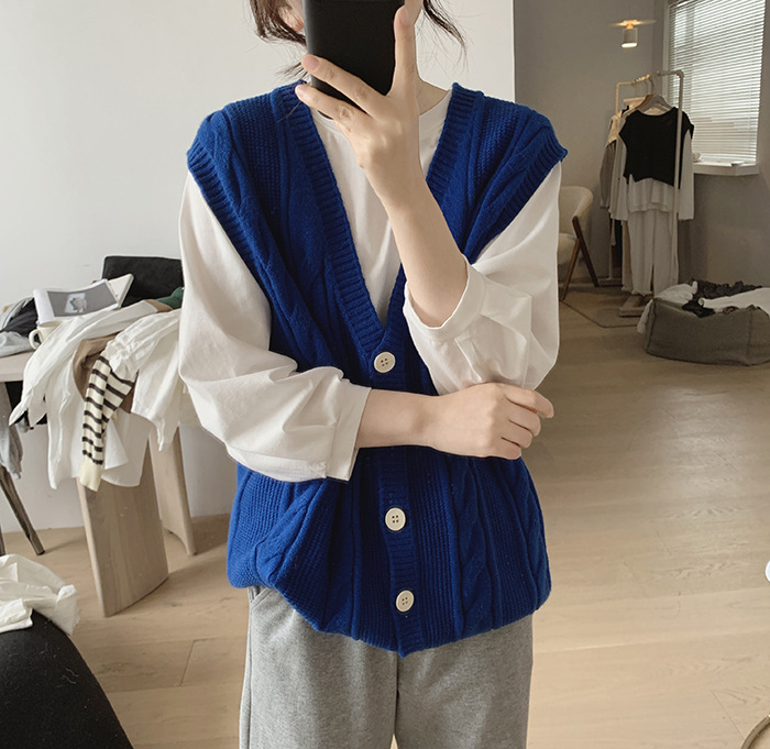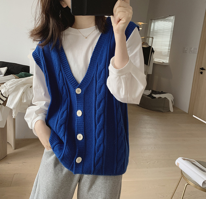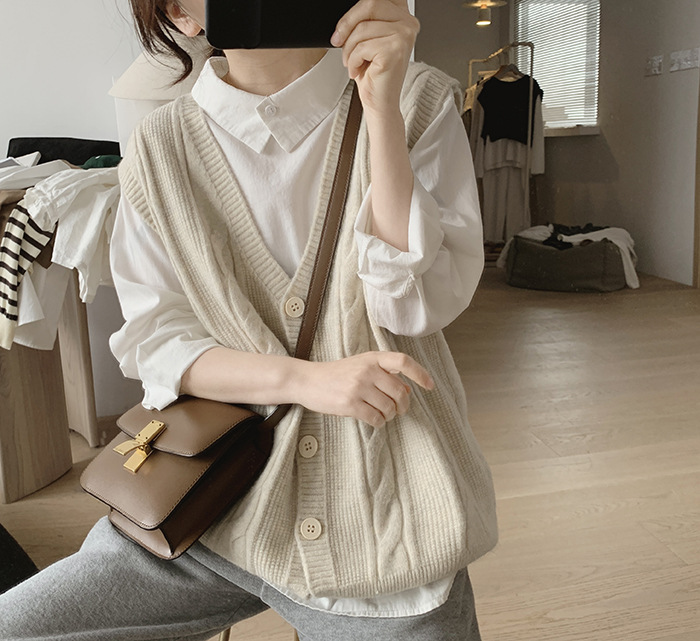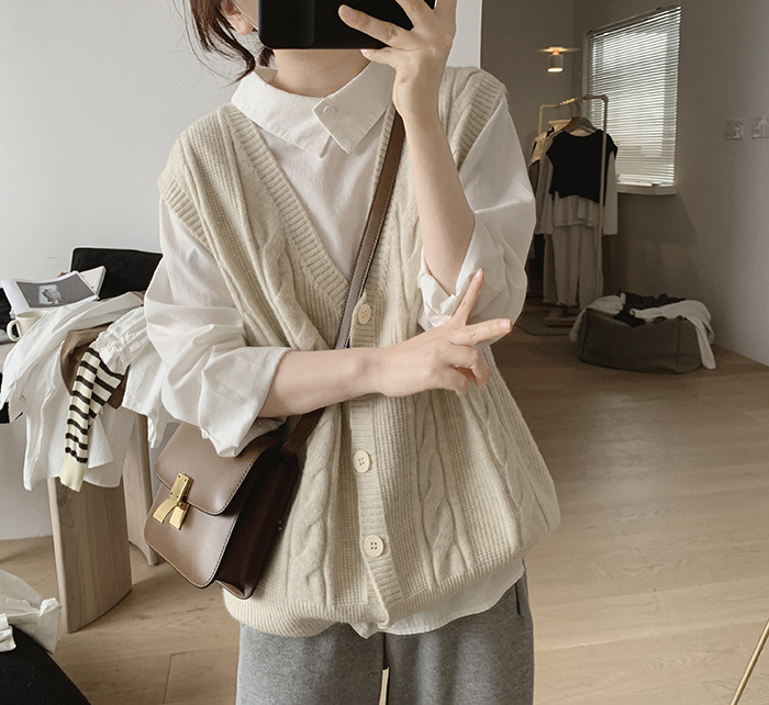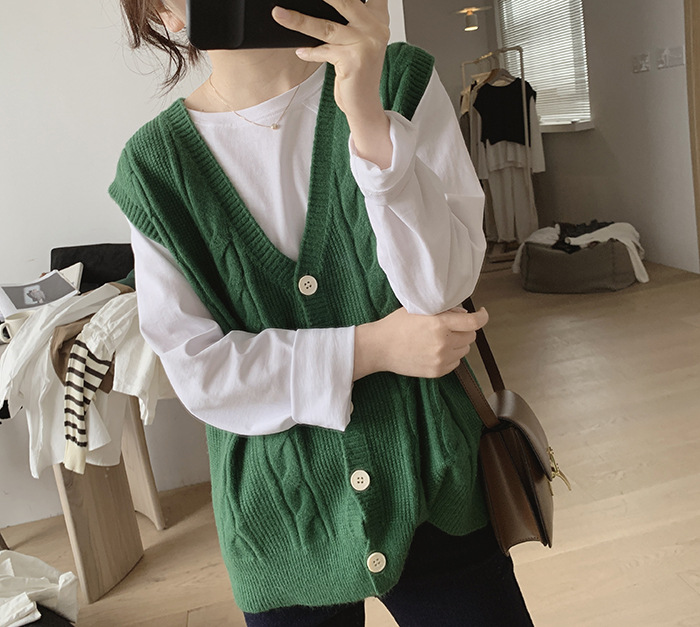 민소매 니트 조끼 초봄 가을 2024 새로운 폭발 여성 트위스트 스택 웨이스트 코트 스웨터 카디건스토어 가기