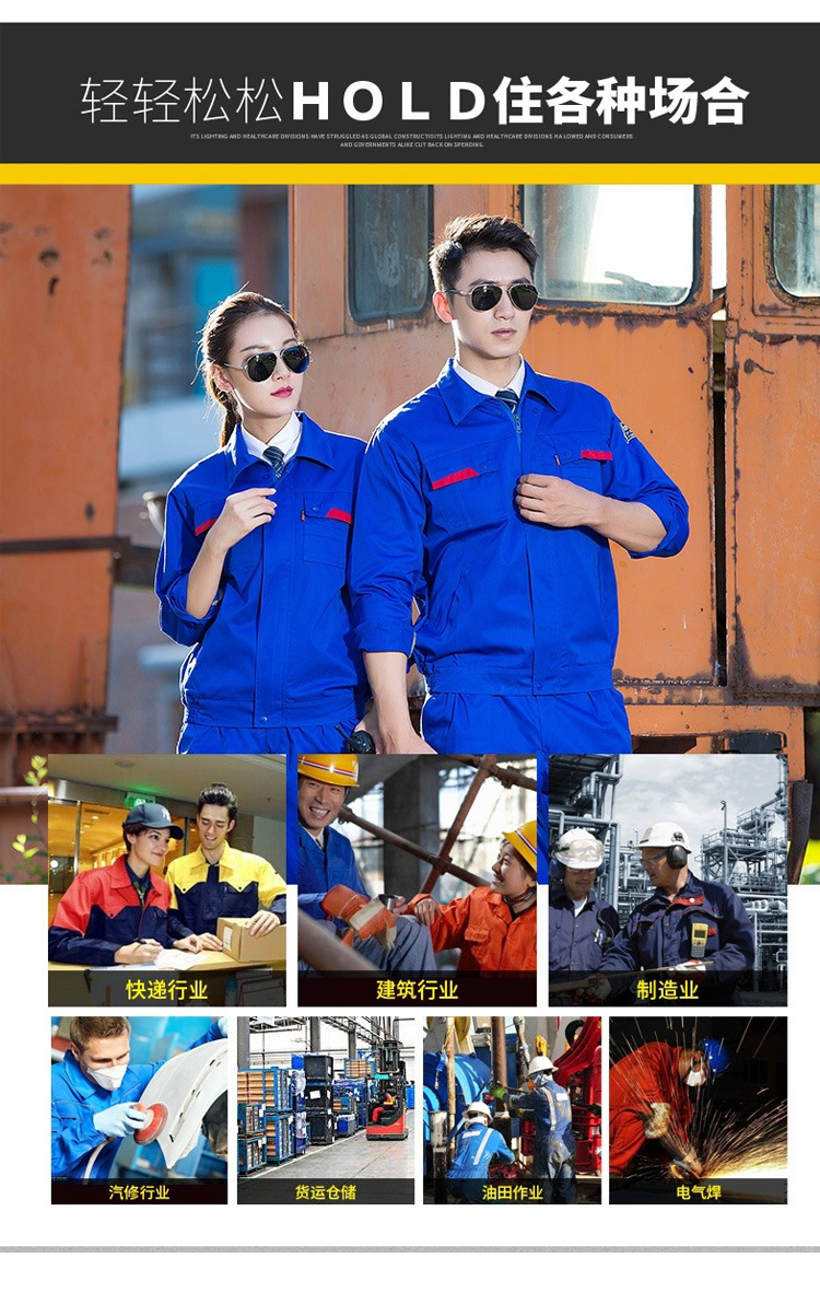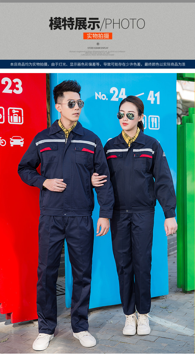 정전기 방지 봄과 가을 작업복 세트 재킷 바지 긴팔 반사 스트립 같은 스타일 남성과 여성을위한 전기 용접 자동 수리 작업복스토어 가기
