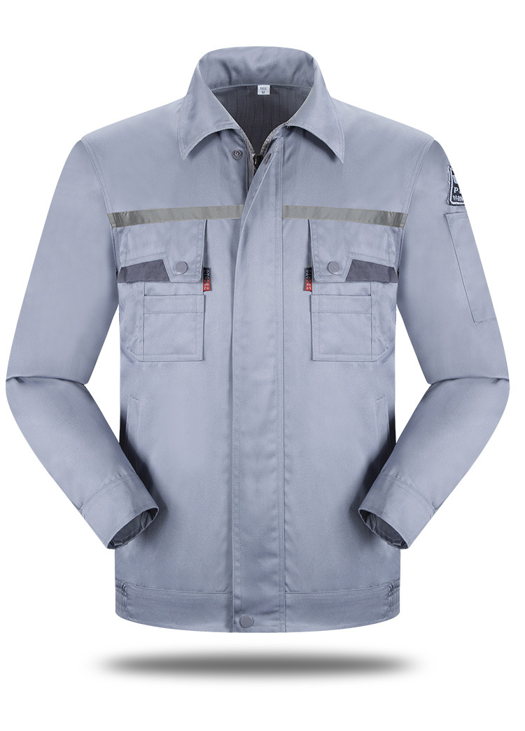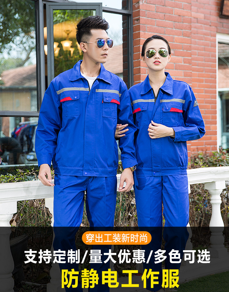 정전기 방지 봄과 가을 작업복 세트 재킷 바지 긴팔 반사 스트립 같은 스타일 남성과 여성을위한 전기 용접 자동 수리 작업복