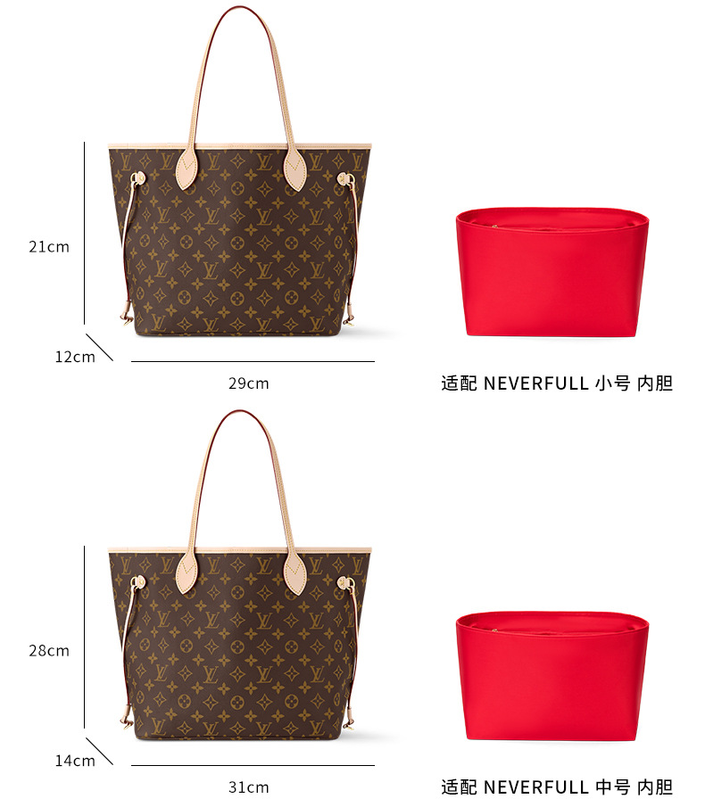 새로운 방수 나일론 네버풀 이너백 보호 라이너 쇼핑백 수납백 이너백 중간 가방 지지대