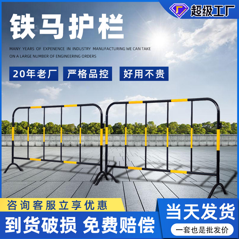 노란색과 검은색 철제 말 가드레일 임시 도로 건설 격리 울타리 교통 안전 가장자리 이동식 가드레일 철제 말 가드레일스토어 가기