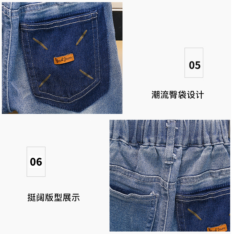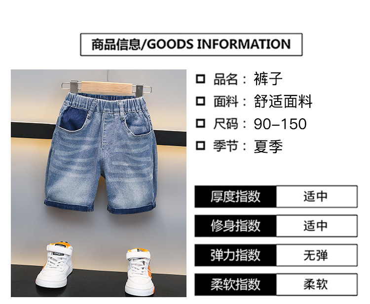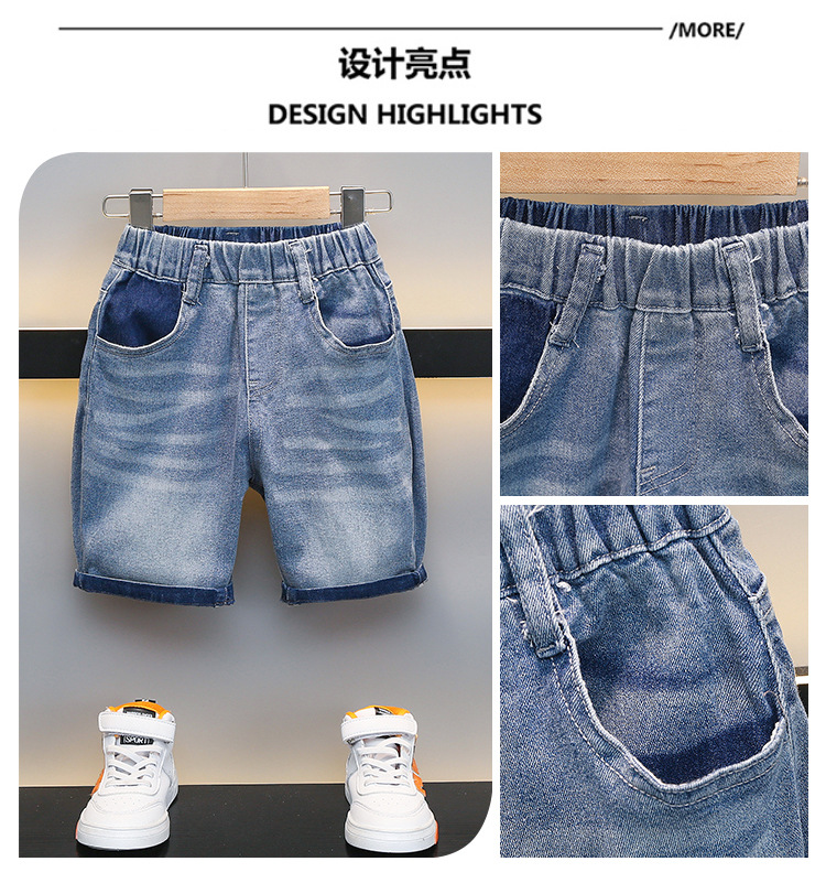 아동복 남아 데님 반바지 여름 착용 2023 새로운 어린이 중간 바지 여름 유행 겉옷 바지 유행