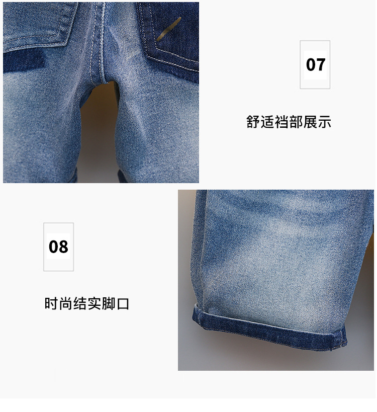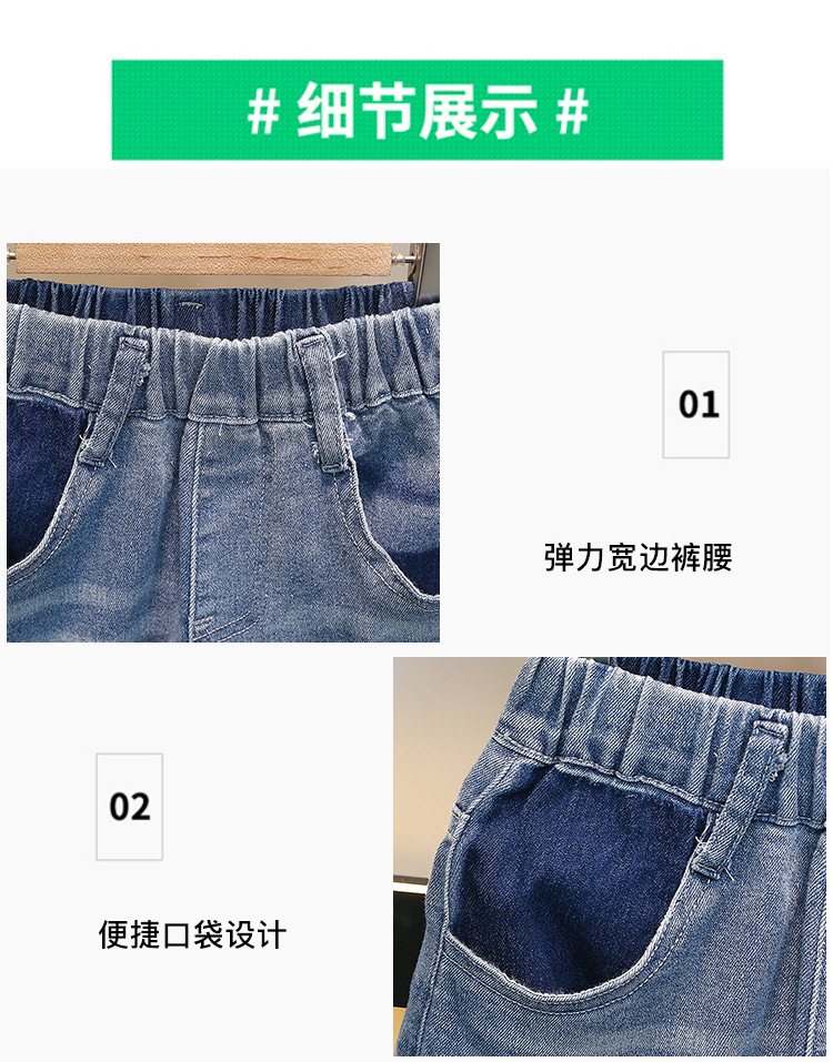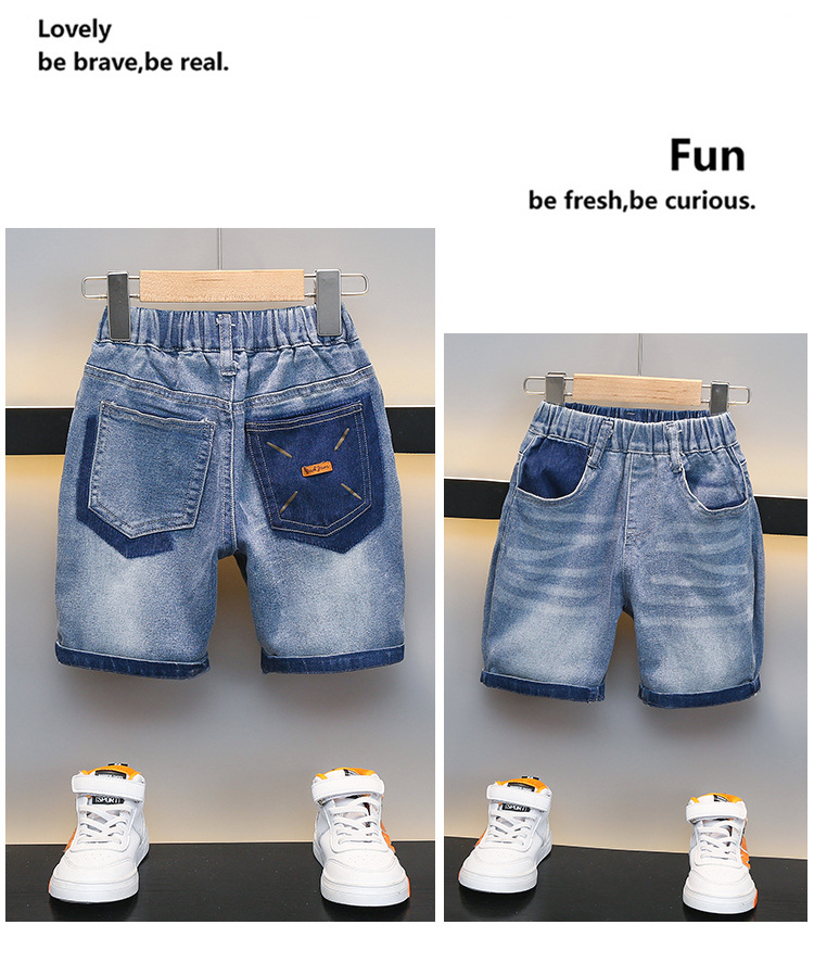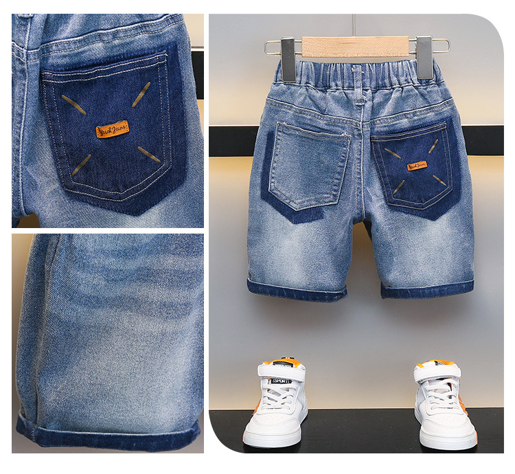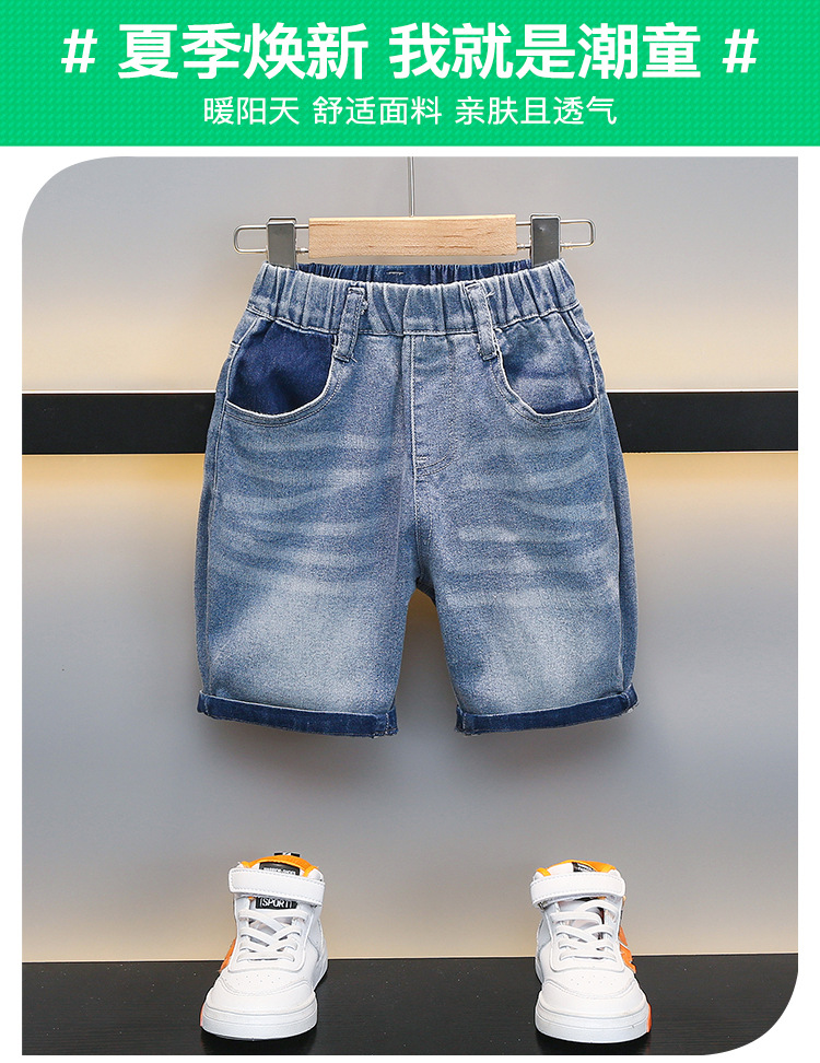 아동복 남아 데님 반바지 여름 착용 2023 새로운 어린이 중간 바지 여름 유행 겉옷 바지 유행스토어 가기