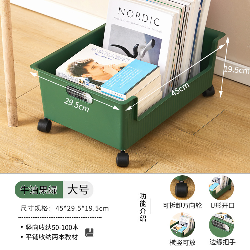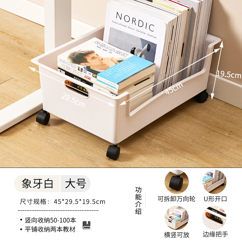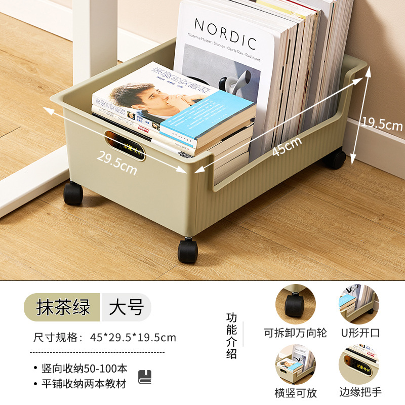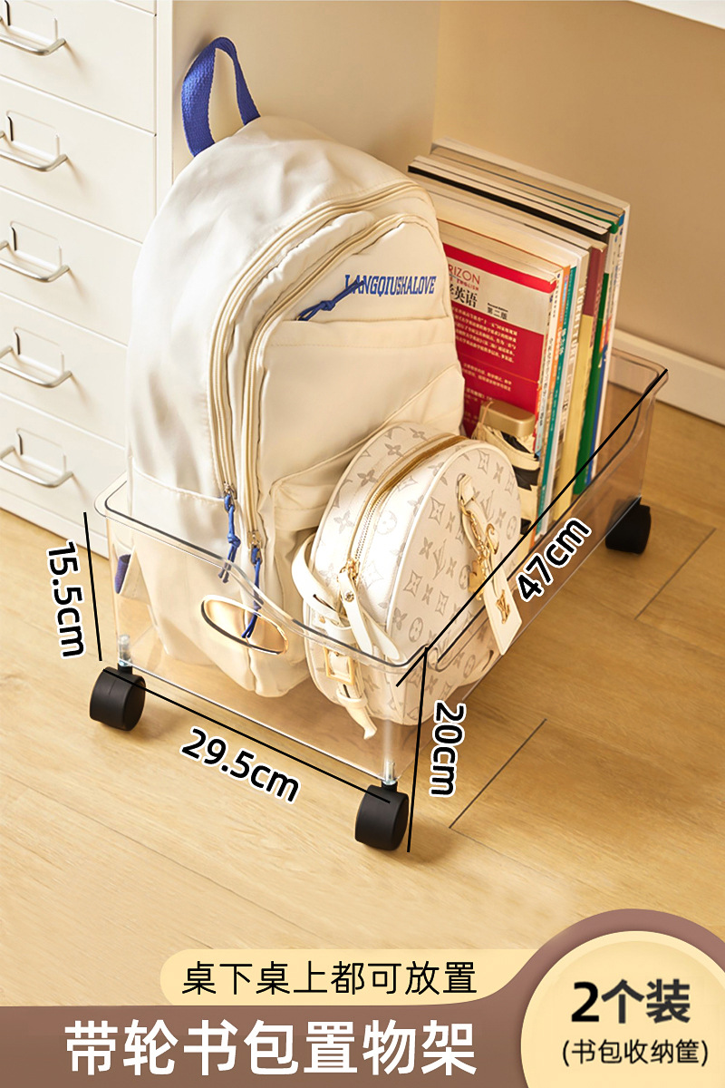 풀리가있는 책가방 보관 랙 테이블 아래 가정용 슬라이딩 랙 책 유물 이동식 바구니 보관 카트스토어 가기