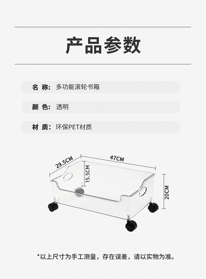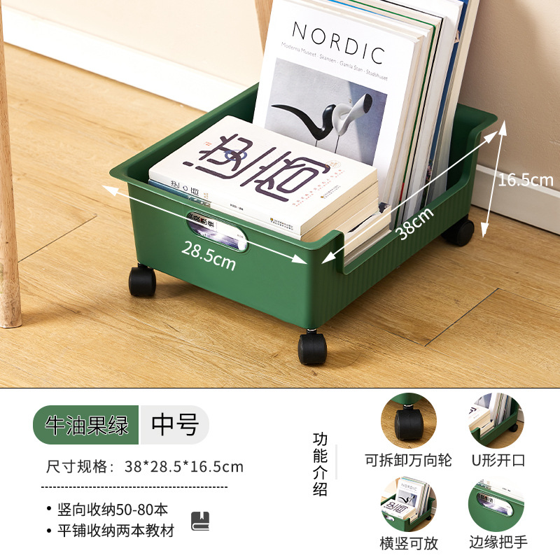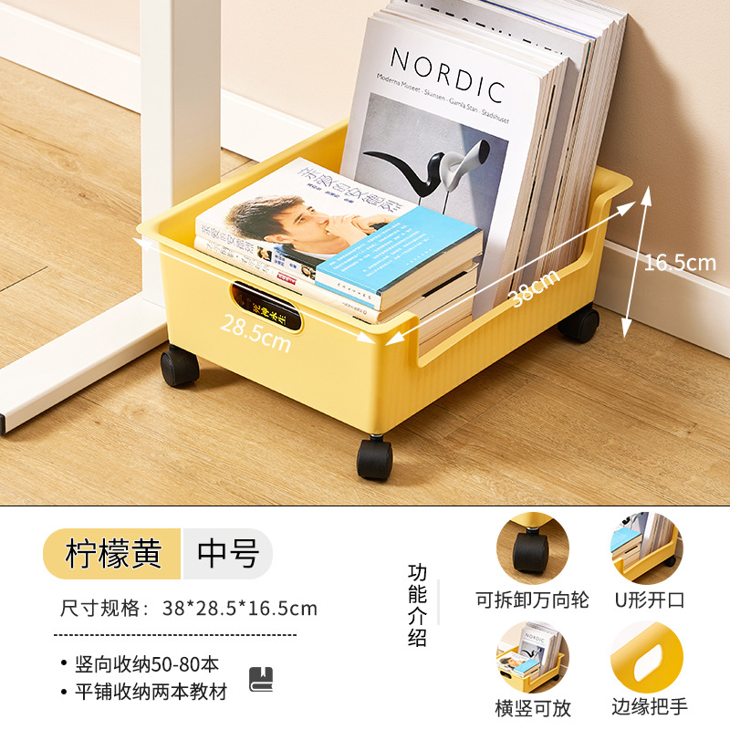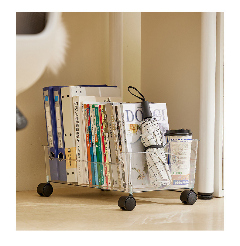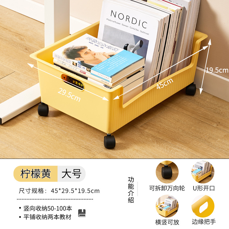 풀리가있는 책가방 보관 랙 테이블 아래 가정용 슬라이딩 랙 책 유물 이동식 바구니 보관 카트스토어 가기