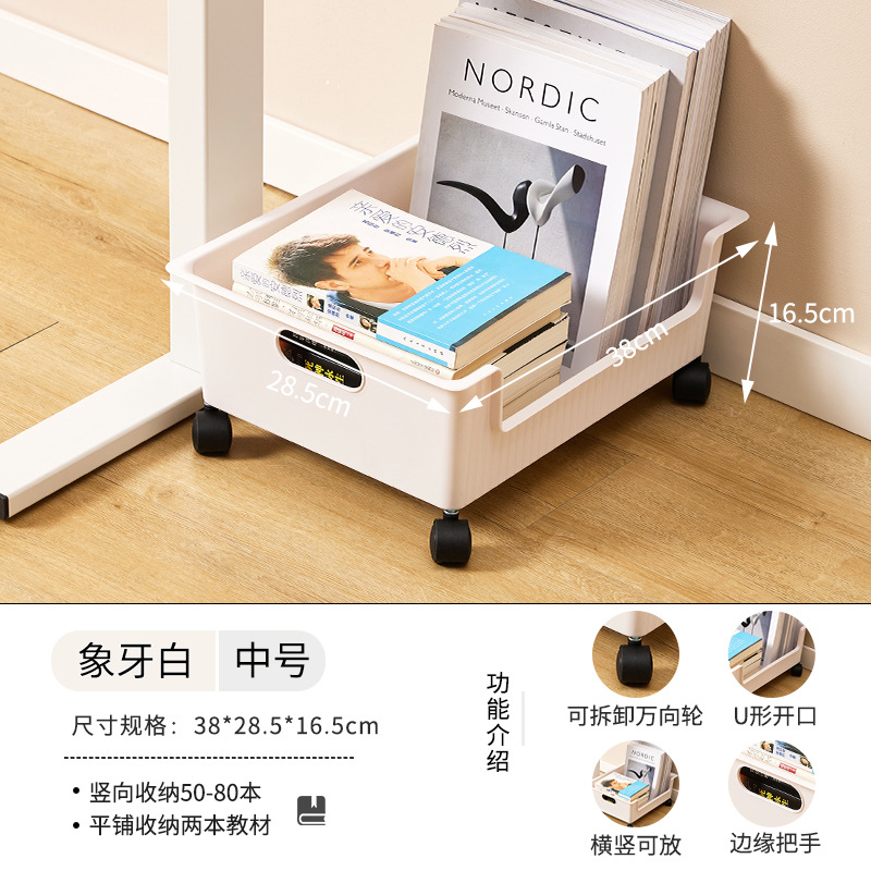 풀리가있는 책가방 보관 랙 테이블 아래 가정용 슬라이딩 랙 책 유물 이동식 바구니 보관 카트