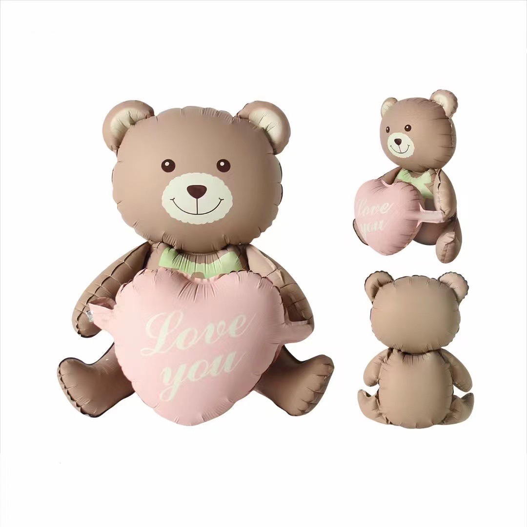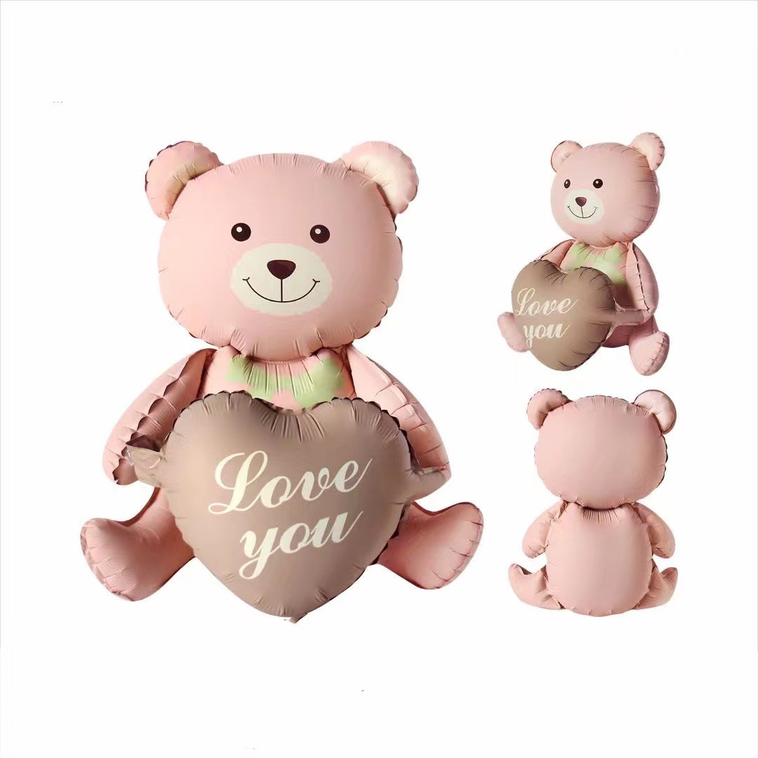 만화 스타일 무광택 매직 케이크 베어 INS 스타일 LOVEYOU 고백 사랑 앉아있는 곰 알루미늄 필름 풍선
