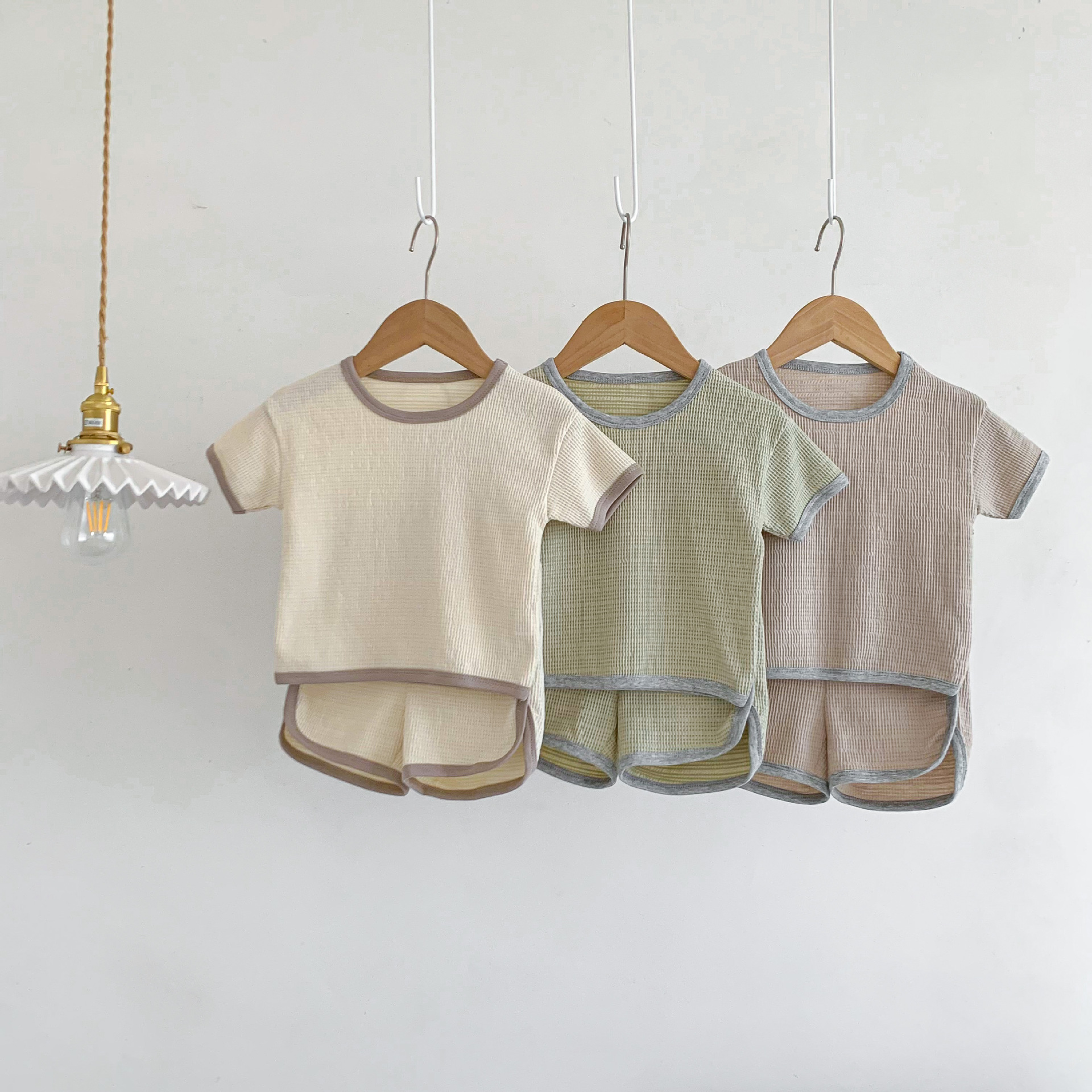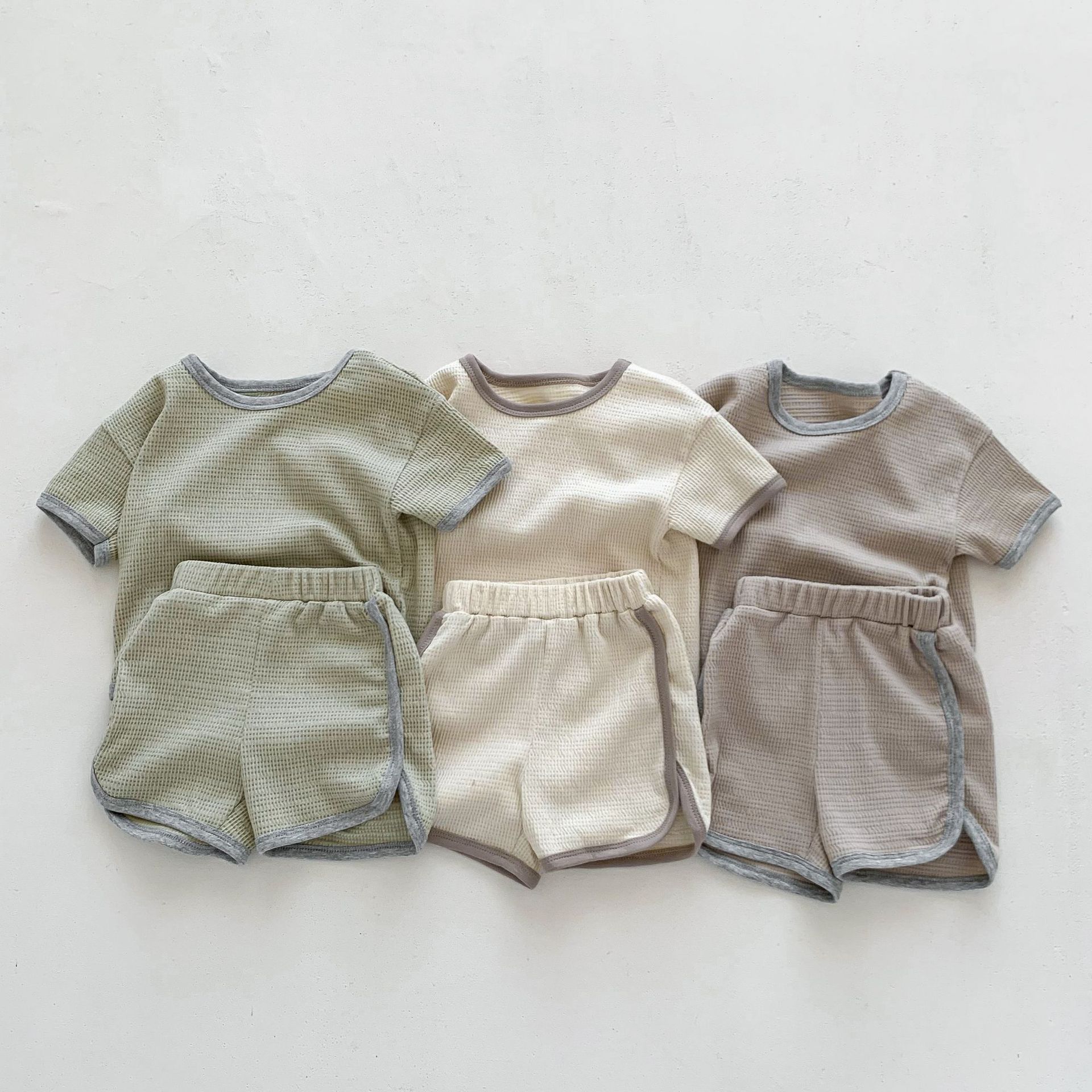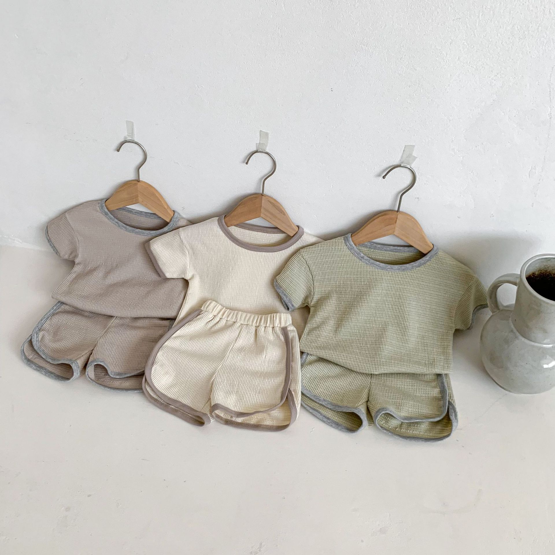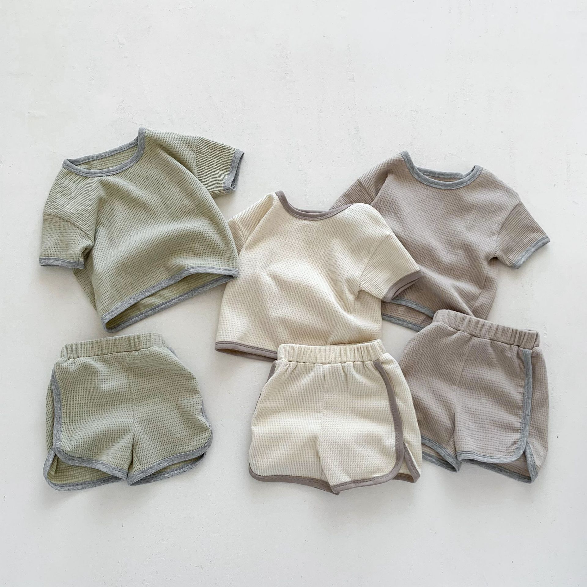 아기와 유아의 와플 캐주얼 스포츠 반팔 세트 소년과 소녀를 위한 투피스 여름 면 반바지스토어 가기