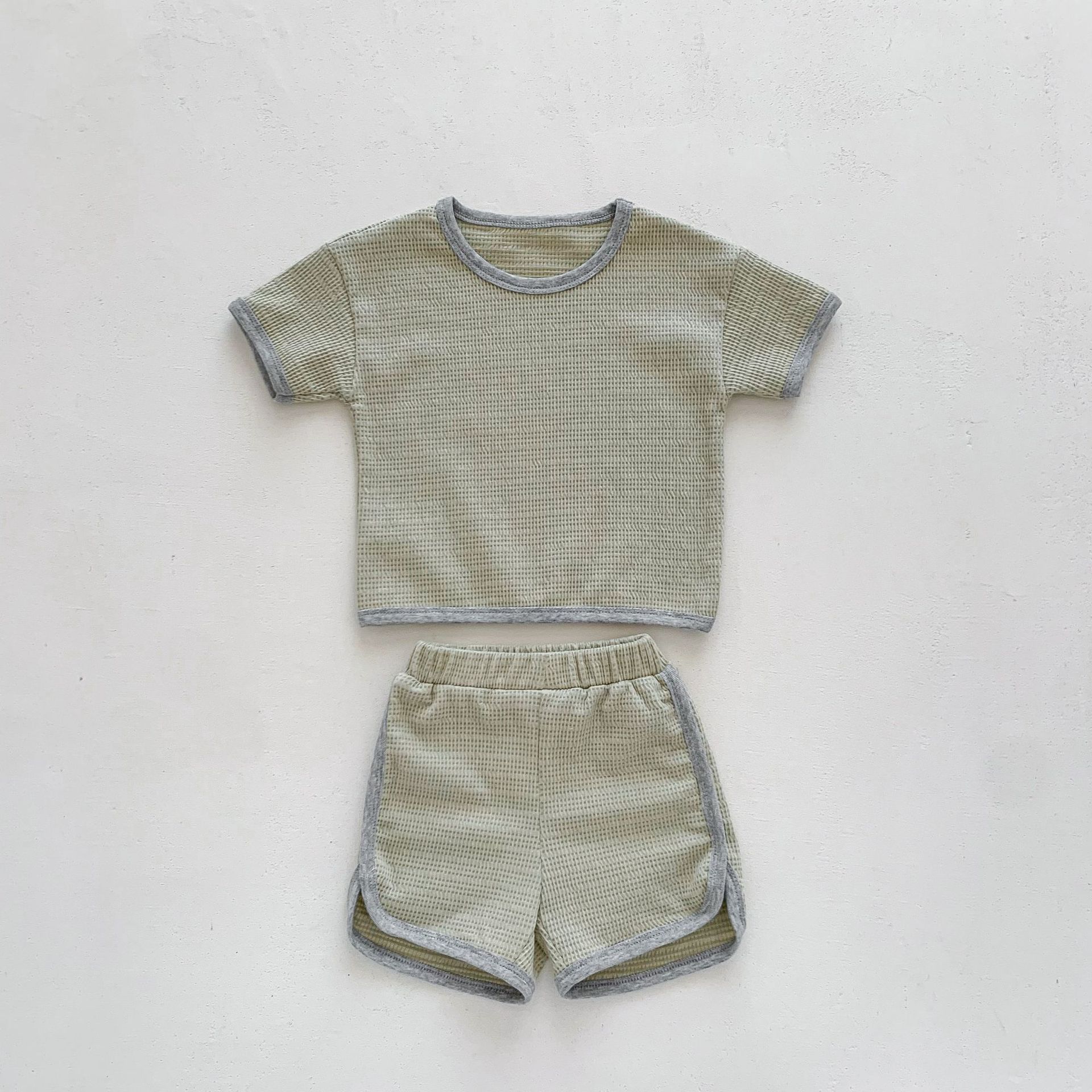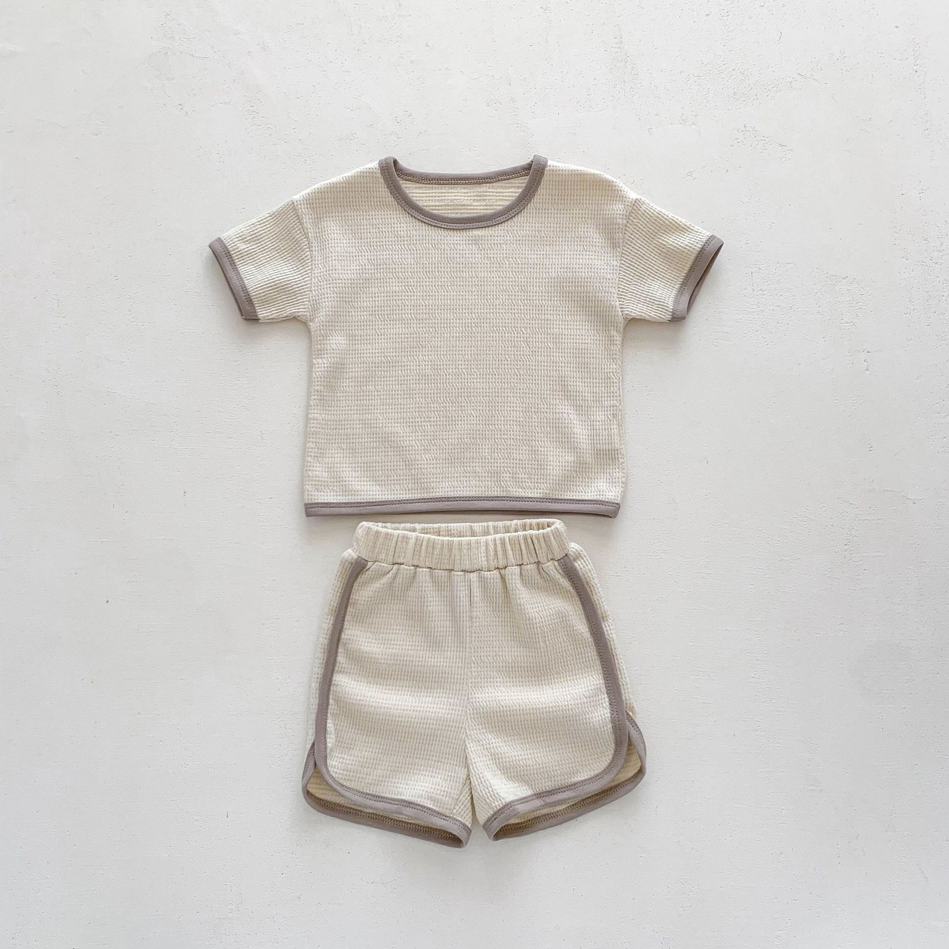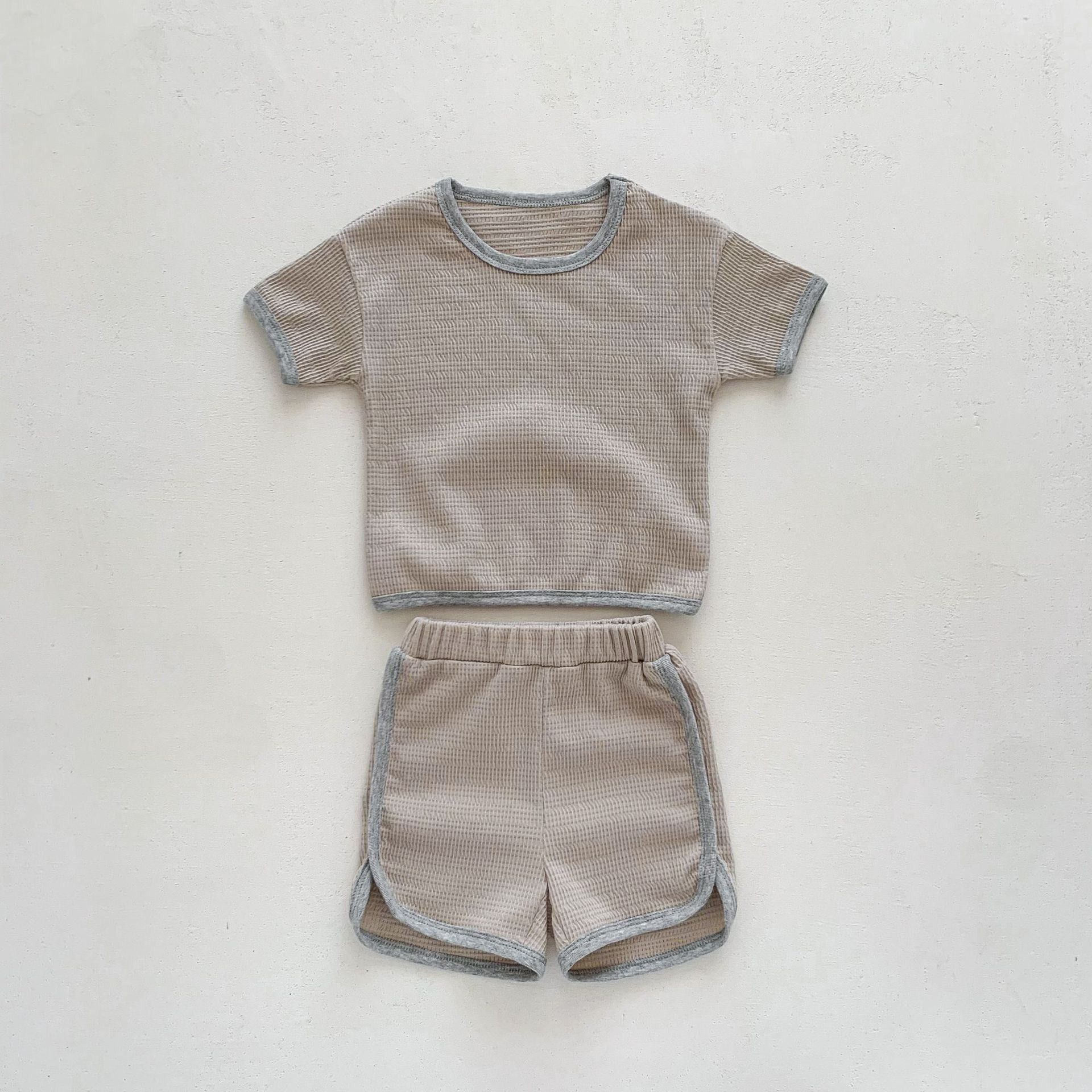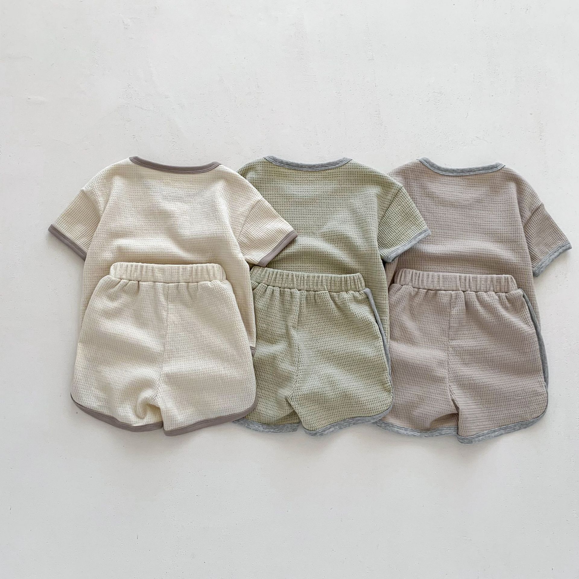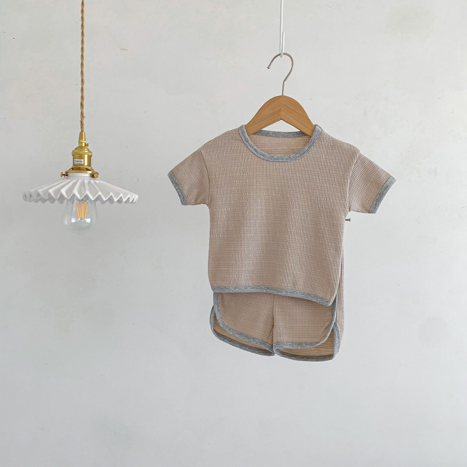 아기와 유아의 와플 캐주얼 스포츠 반팔 세트 소년과 소녀를 위한 투피스 여름 면 반바지스토어 가기