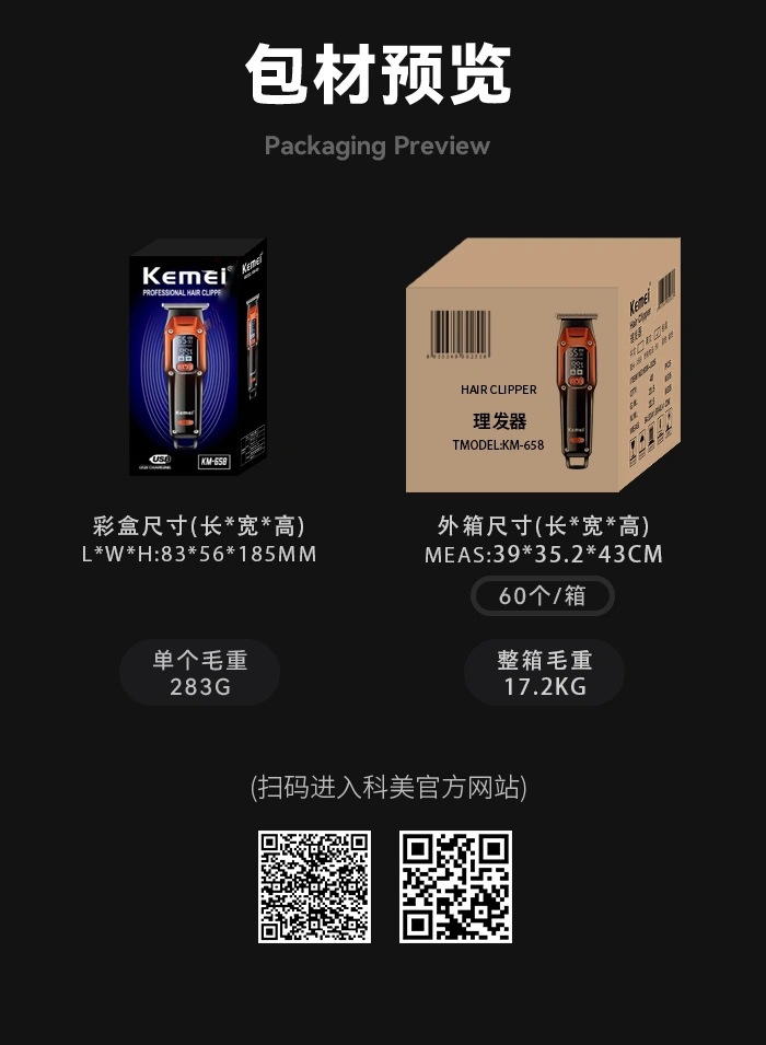 새로운 코미 KM-658 헤어 클리퍼 전기 면도 헤드 LED LCD 디지털 디스플레이 USB 빠른 충전 헤어 클리퍼 미용실스토어 가기