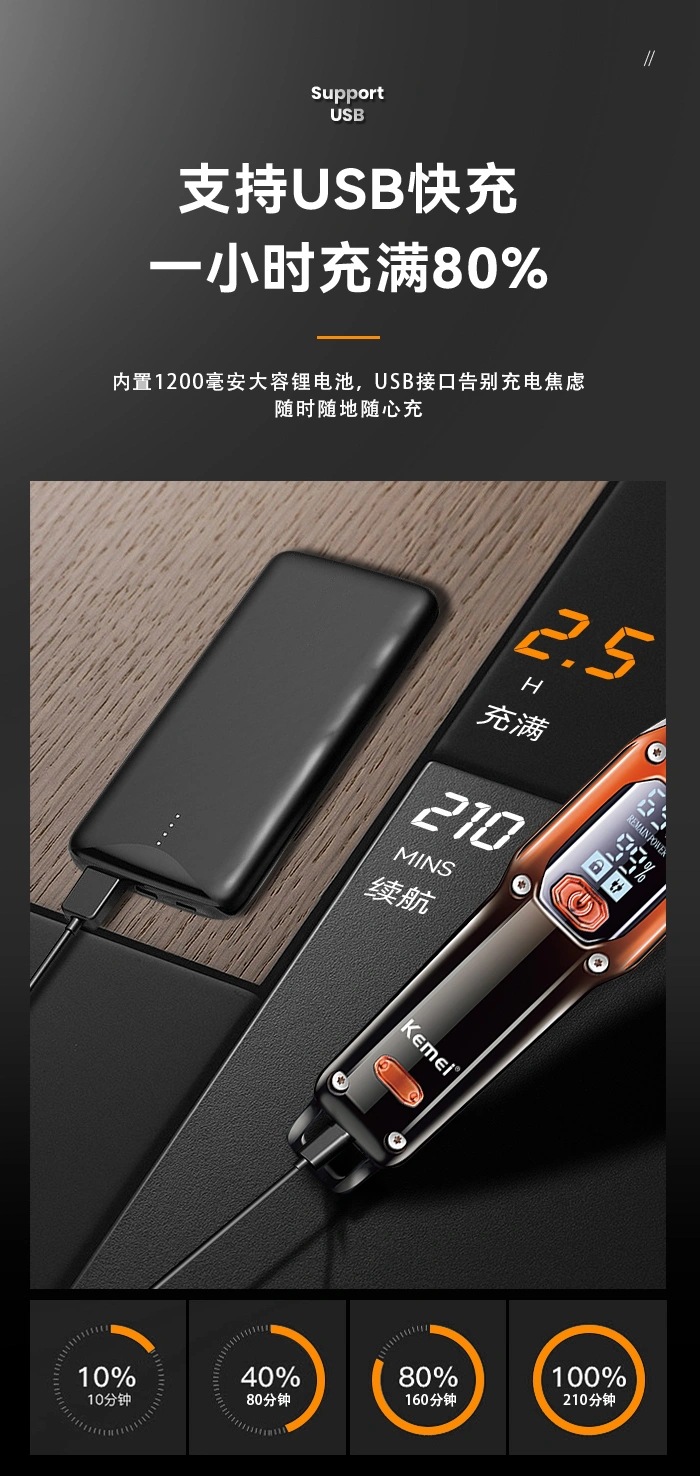 새로운 코미 KM-658 헤어 클리퍼 전기 면도 헤드 LED LCD 디지털 디스플레이 USB 빠른 충전 헤어 클리퍼 미용실