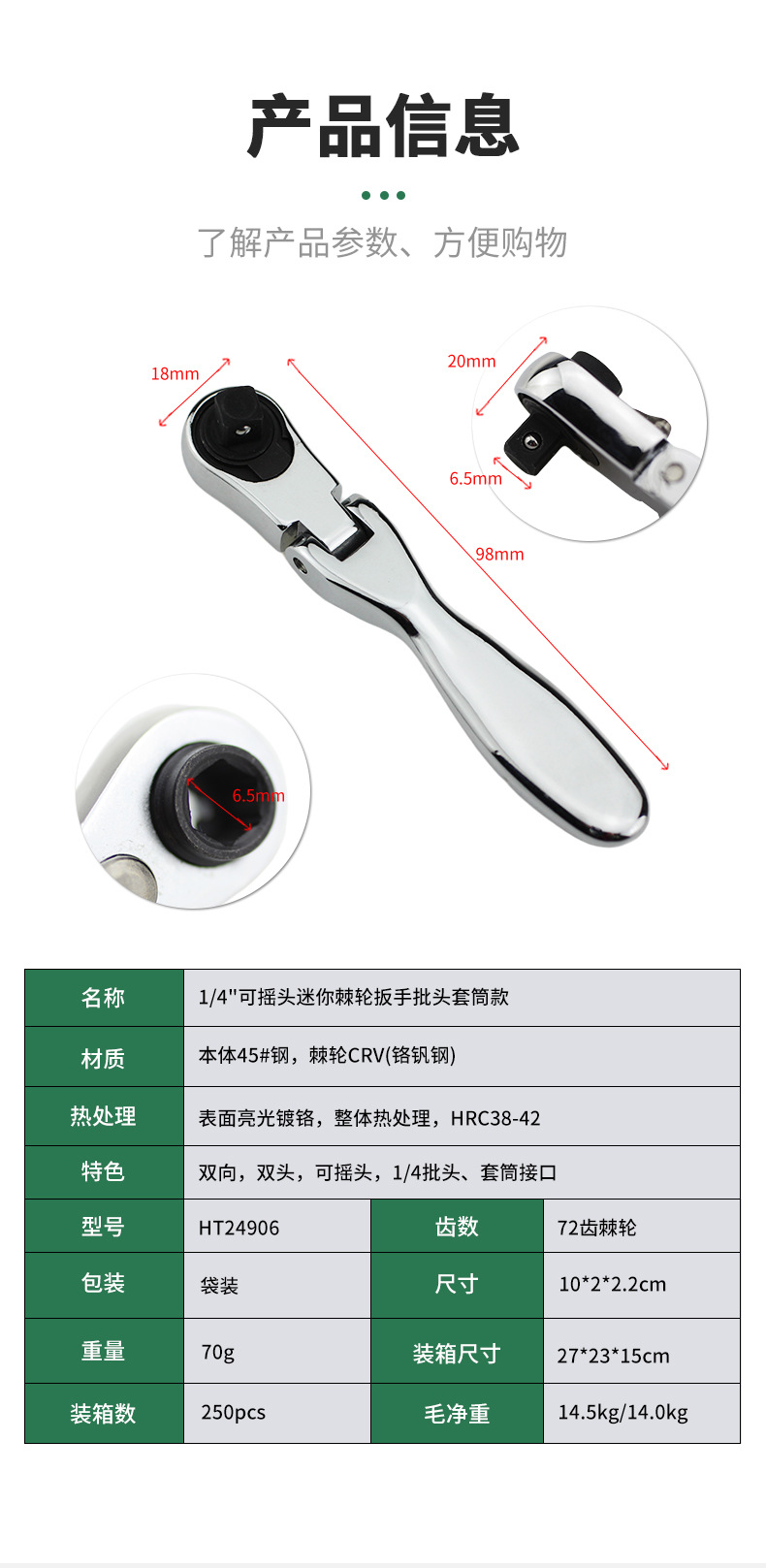 공급 1/4 고속 회전 양방향 이중 미니 래칫 렌치 배치 핸들 배치 래칫 렌치