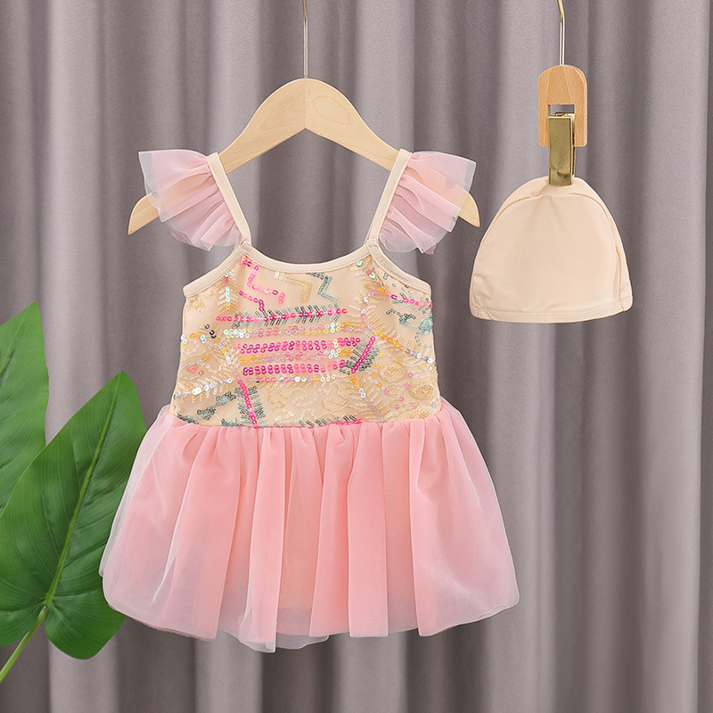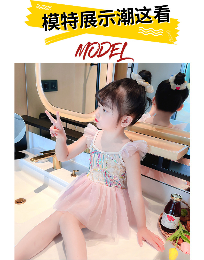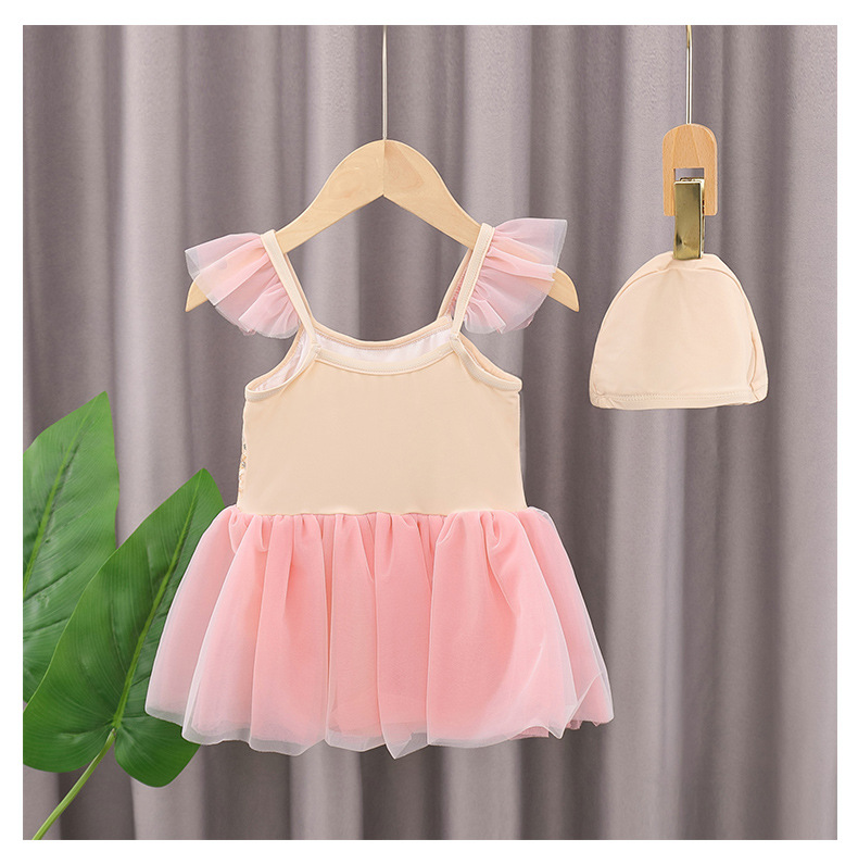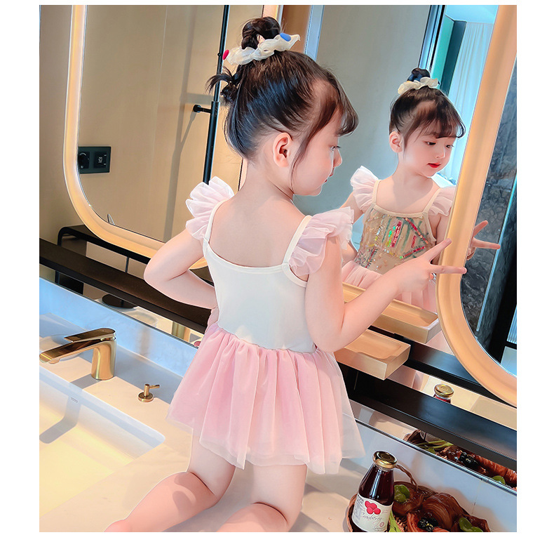 2023 한국 아동 수영복 여아 원피스 꽃 거즈 스커트 아기 수영복 공주 긴팔 자외선 차단제 수영복