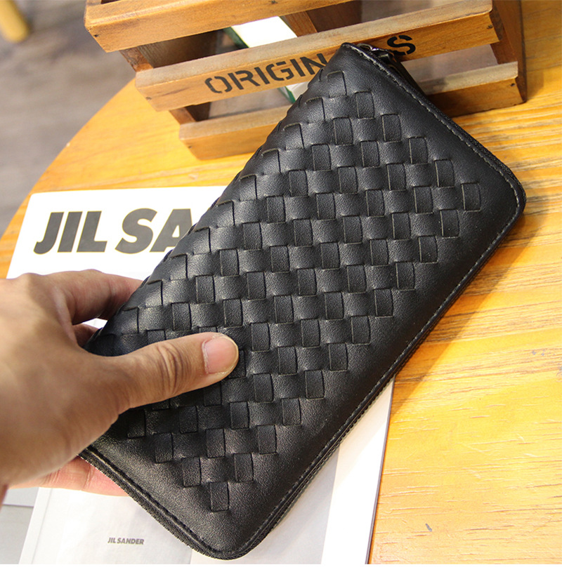새로운 한국 스타일 짠 지갑 긴 핸드백 수제 클러치 남성용 휴대용 지갑 패션 카드 가방스토어 가기