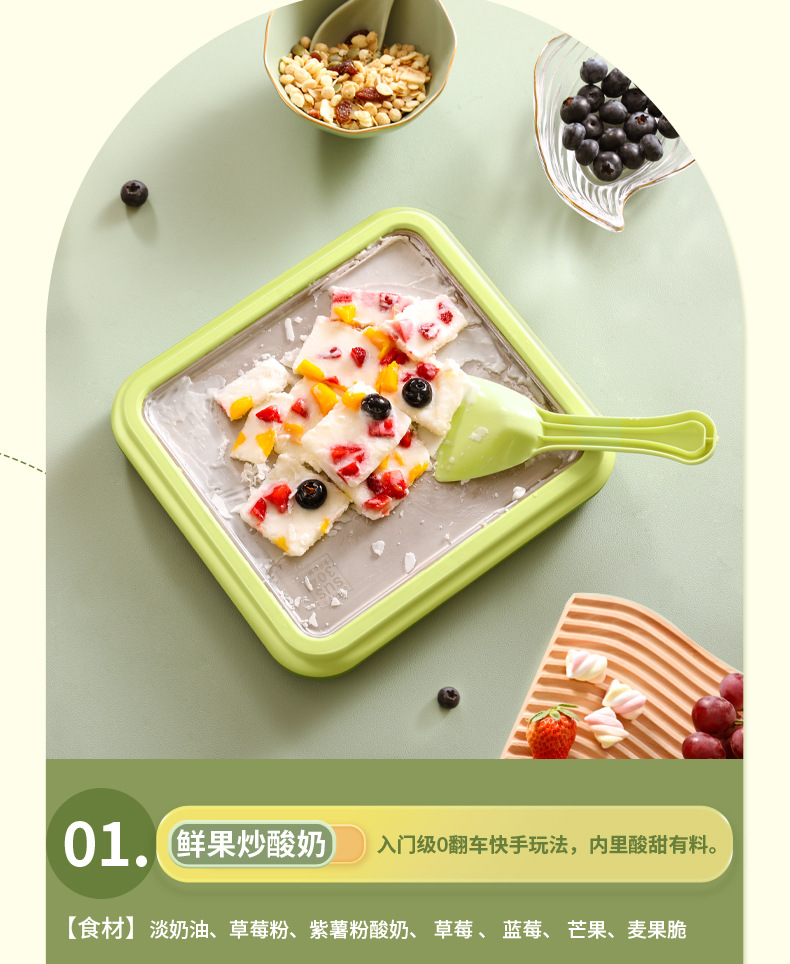 Royalstar 튀김 요구르트 기계 가정용 소형 아이스크림 기계 수제 DIY 고가 튀김 얼음 트레이 어린이 튀김 얼음 기계스토어 가기