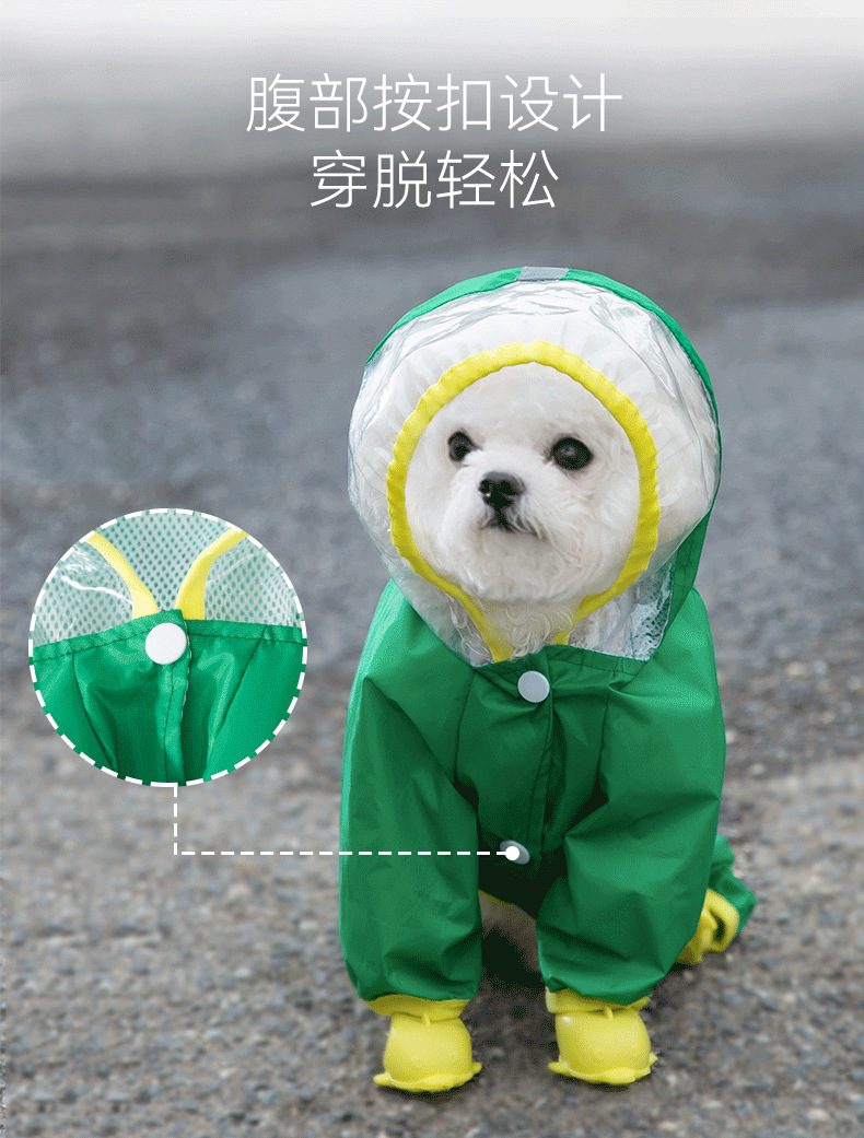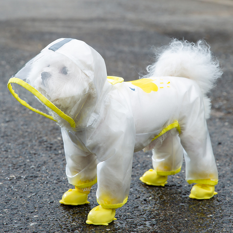 바람과 비가없는 투명 젖빛 비옷 큰 개 4 발 모든 것을 포함하는 방수 Shenarifa Dou 봄과 여름 애완 동물 의류스토어 가기
