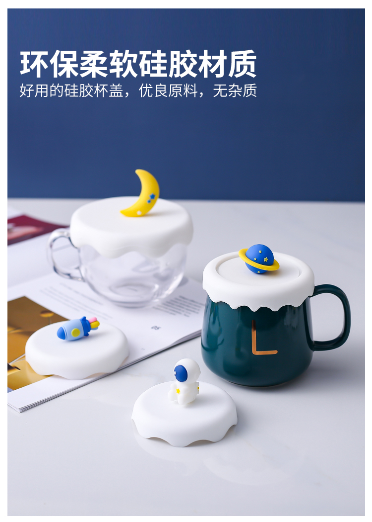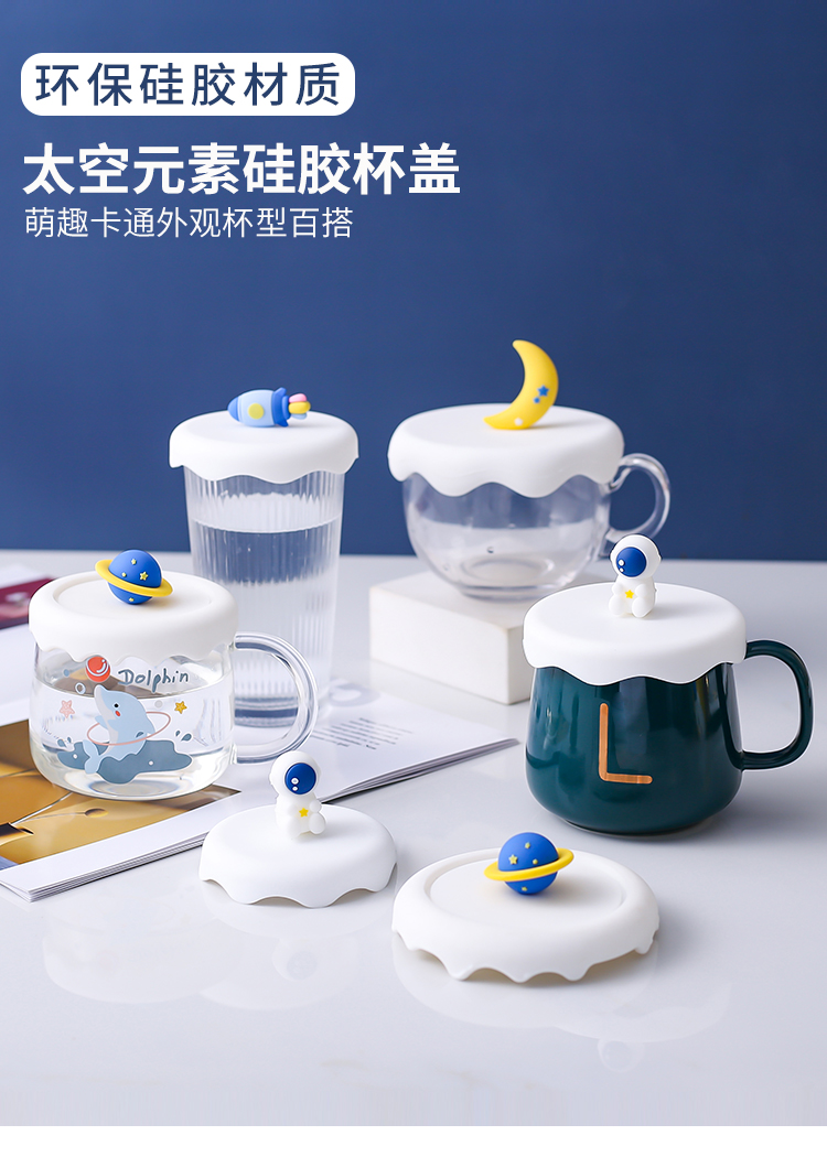 通用立体杯盖太空星球杯盖积雪盖玻璃陶瓷杯硅胶杯盖创意马克杯盖