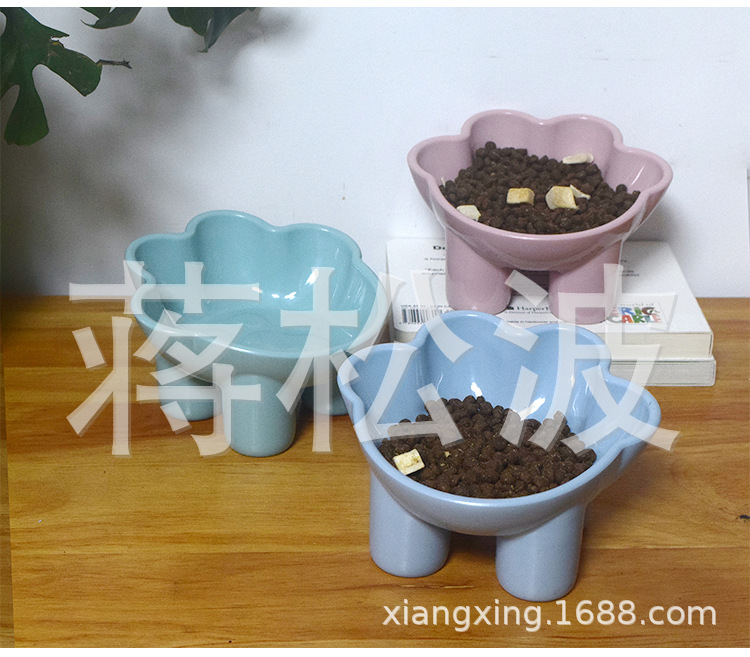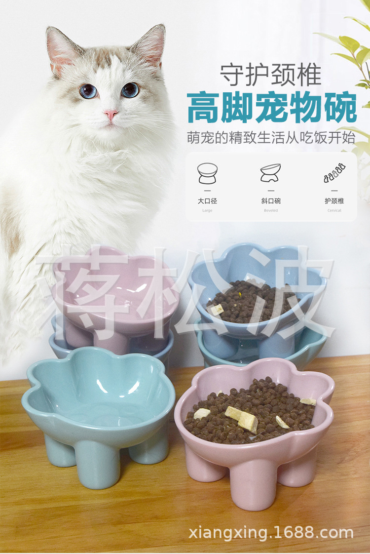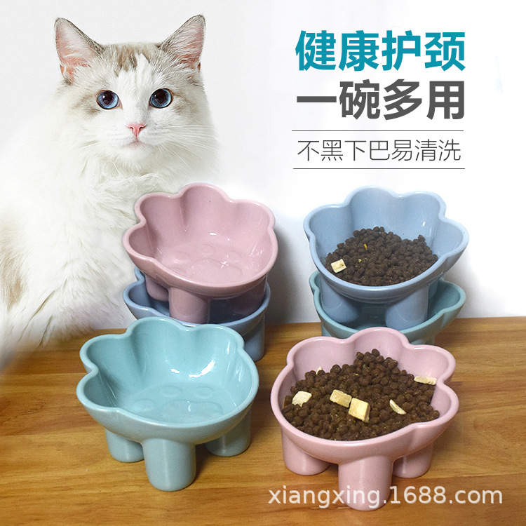 고양이 사료, 애완 동물 고양이 그릇, 개 식수 및 식사 도매 무료 배송 애완 동물 용품을 위한 높고 경사진 일체형 플라스틱 목 보호대스토어 가기