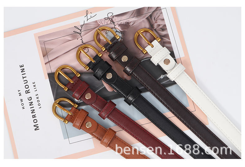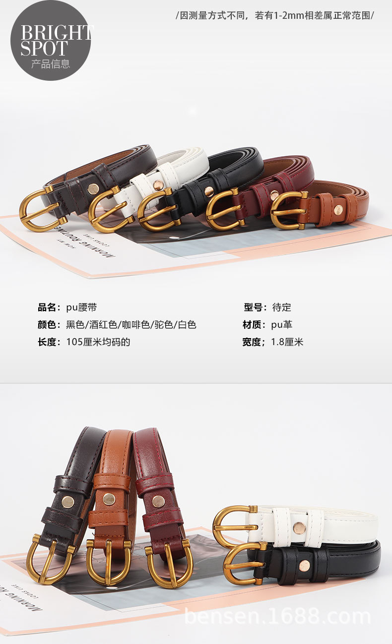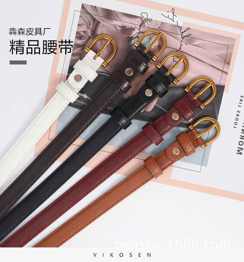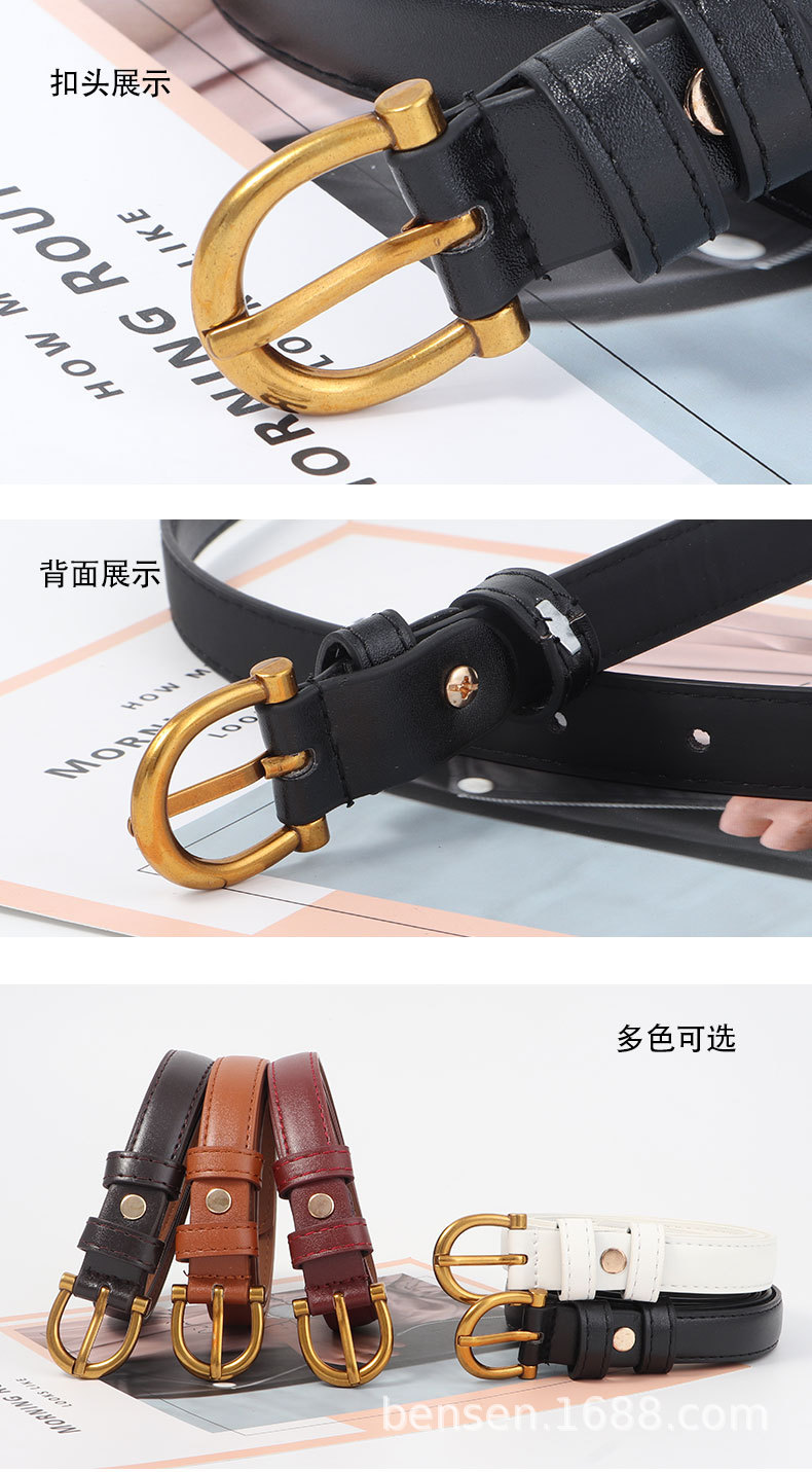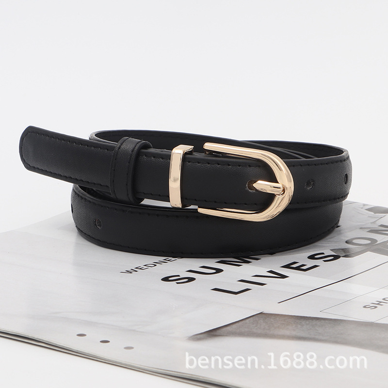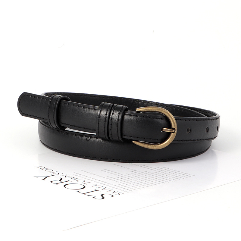 제조업체 재고 얇은 가죽 벨트 블랙 미니 벨트 심플 레트로 금색 청바지 벨트 인스 스타일 한국 여성용 다용도