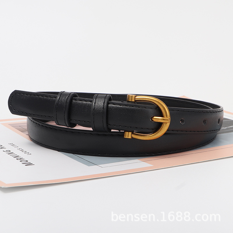 제조업체 재고 얇은 가죽 벨트 블랙 미니 벨트 심플 레트로 금색 청바지 벨트 인스 스타일 한국 여성용 다용도스토어 가기
