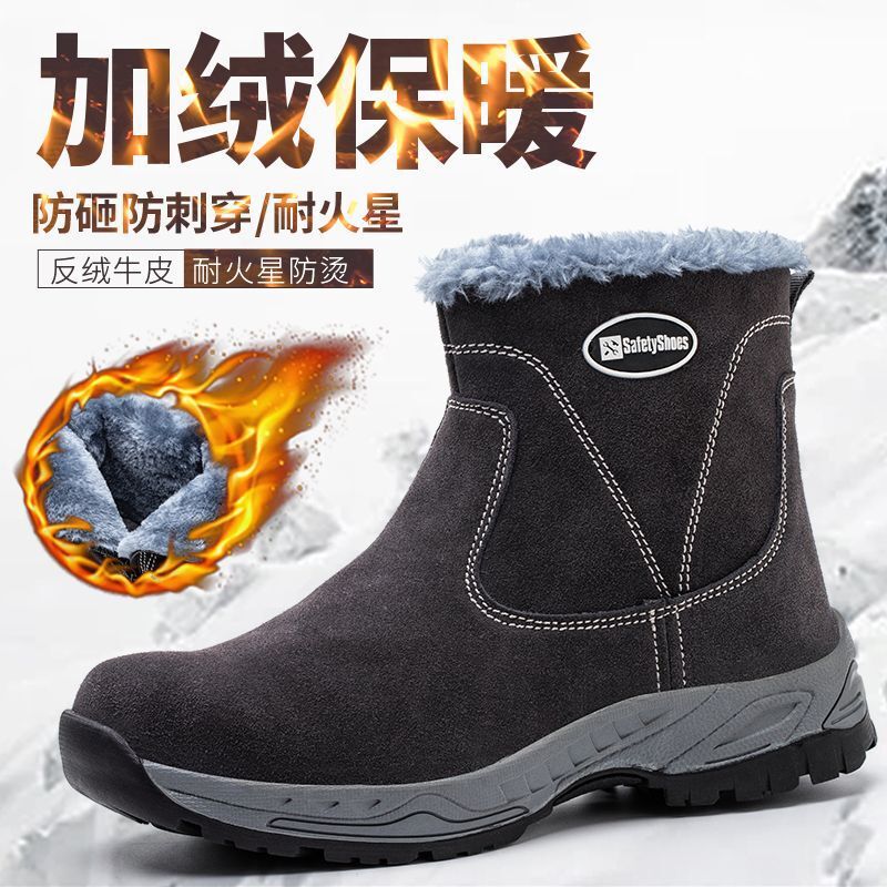 남성용 고급 보호화, 하이탑 지퍼형 겨울 방한화, 충격 방지 및 관통 방지, 소가죽 용접 작업 안전화, 미끄럼 방지스토어 가기