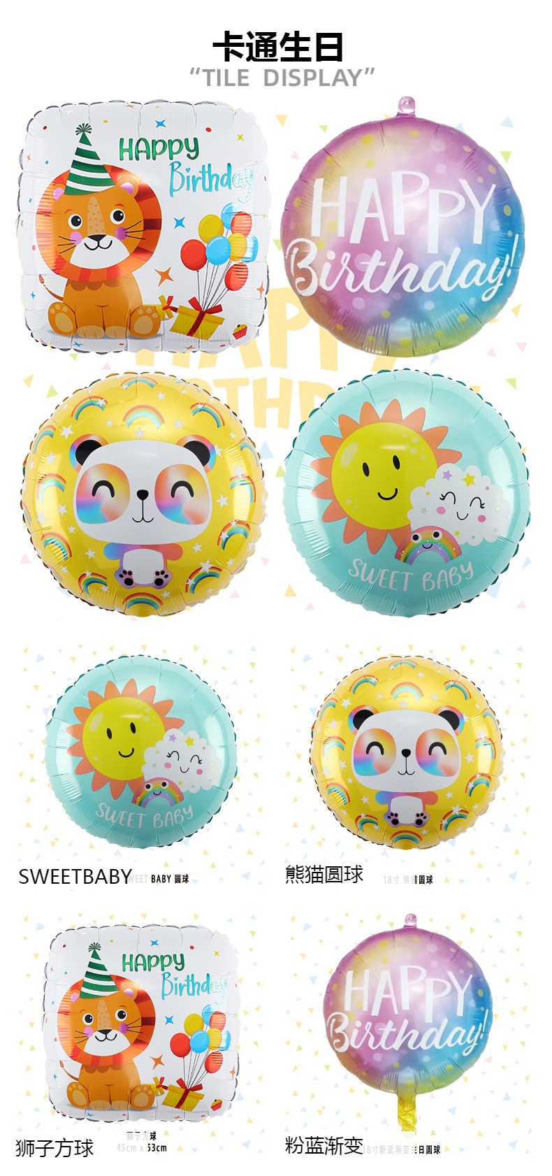 새로운 18 인치 만화 생일 공 둥근 공 어린이 생일 파티 장식 라운드 알루미늄 호일 풍선