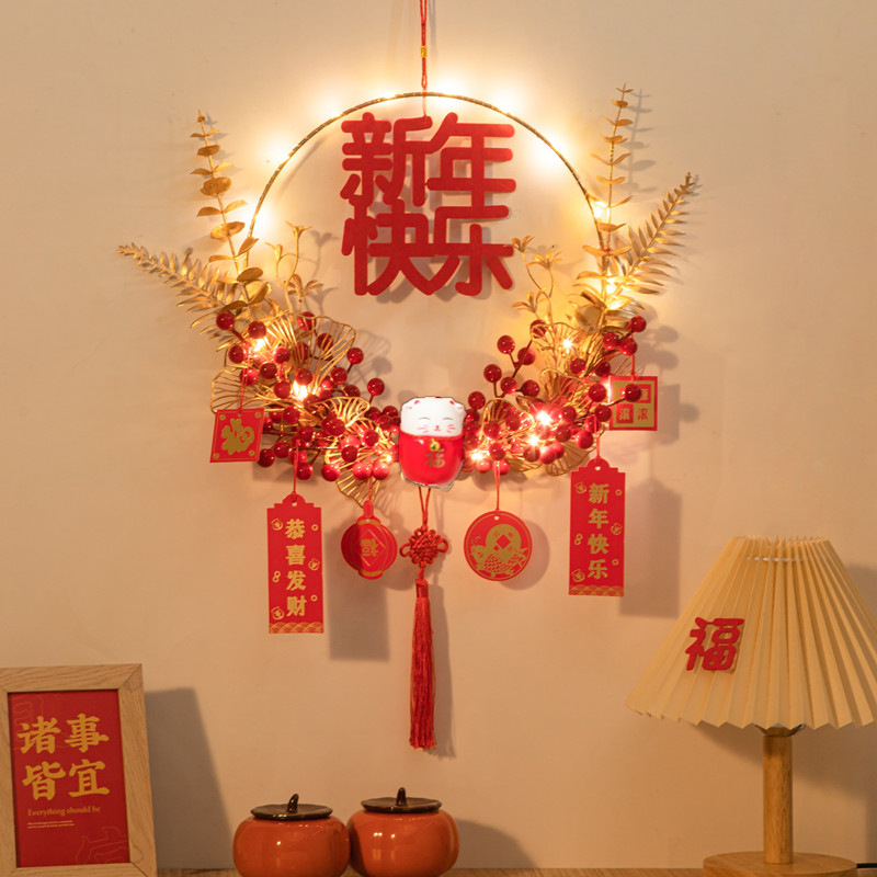 완성 된 새해 매달려 장식품 봄 축제 장식 새해 교수형 장식품 실내 거실 벽 장식 푸 캐릭터 펜던트 스테레오 화환스토어 가기