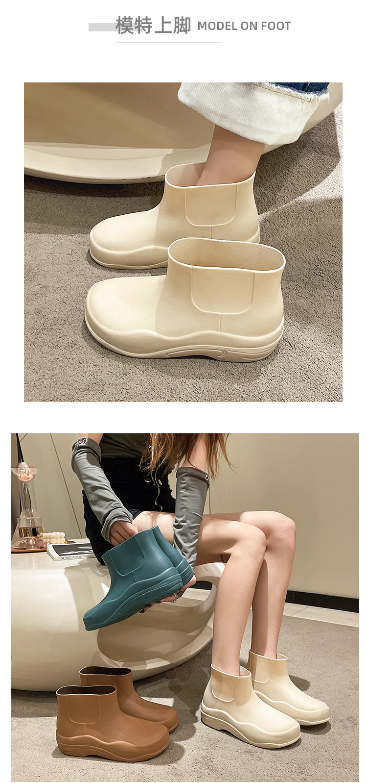레인 부츠 여성용 새로운 방수 미끄럼 방지 패션 미드 튜브 주방 미끄럼 방지 작업 레인 부츠 성인 내마모성 발 물 신발 여성스토어 가기
