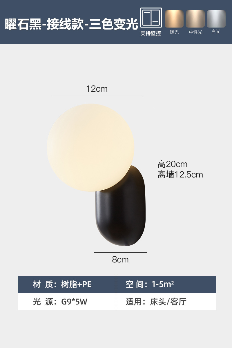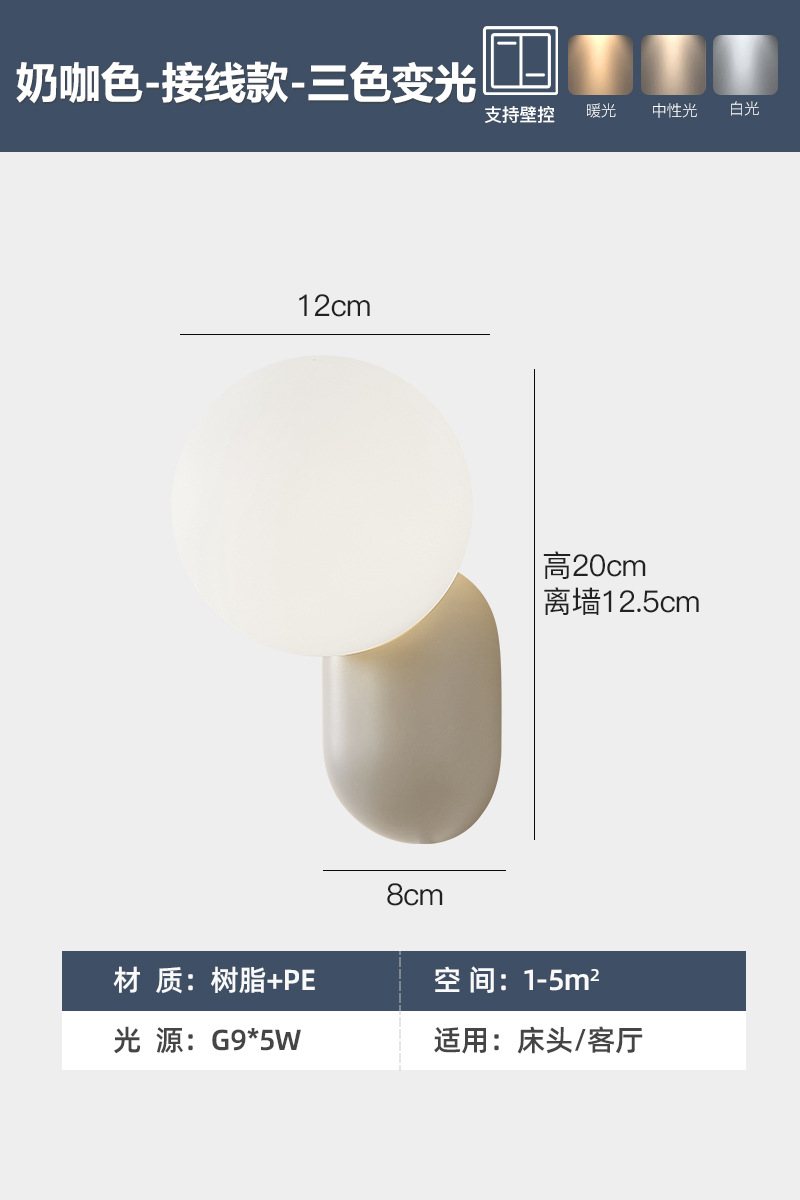 크림 스타일 간단한 침실 벽 램프 북유럽 침대 옆 작은 벽 램프 복도 통로 벽 램프 어린이 방 야간 조명