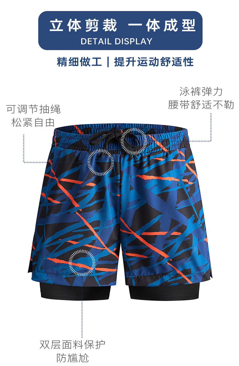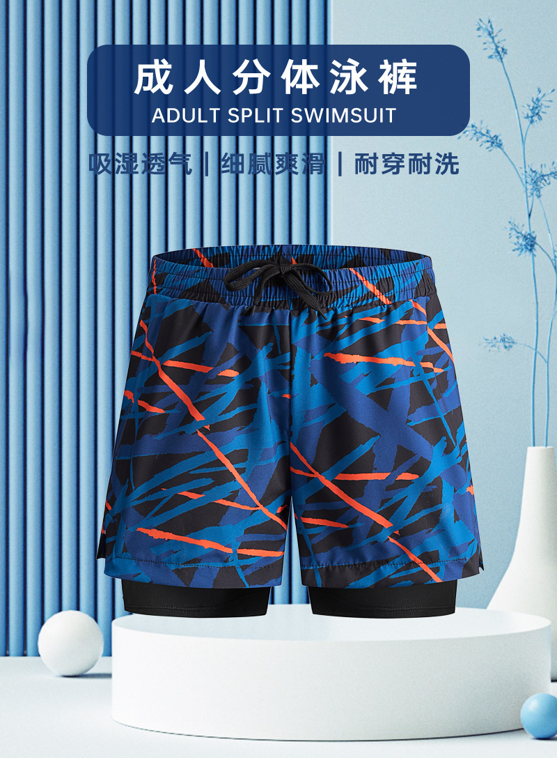수영 트렁크 남자의 더블 레이어 속건 방지 당황 성인 수영 트렁크 복서 느슨한 플러스 사이즈 캐주얼 비치 바지 신상품