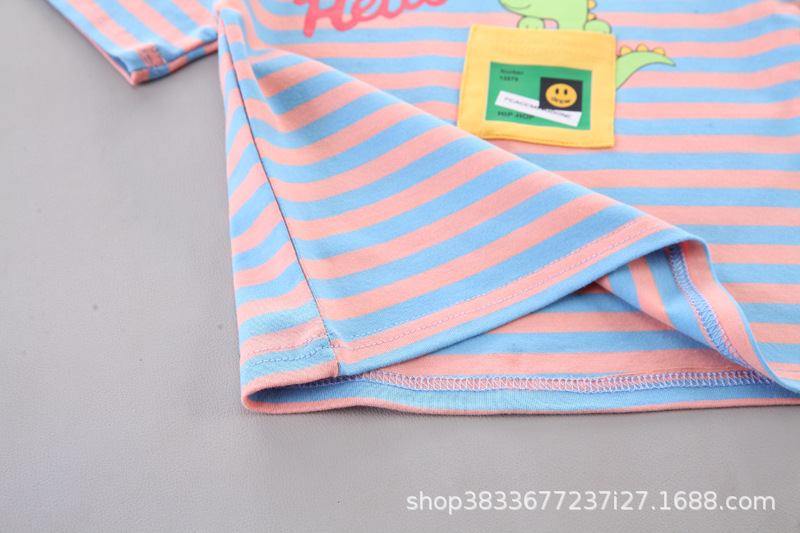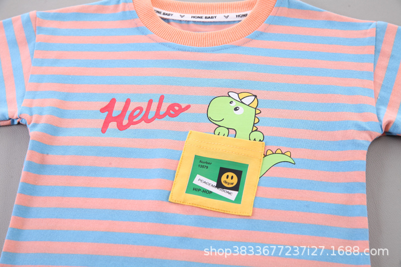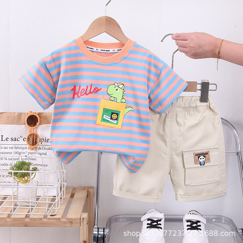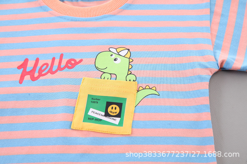 여름 소년 얇은 포켓 공룡 세트 아기 여름 어린이 옷 반팔 잘 생긴 패션 아동 의류 도매