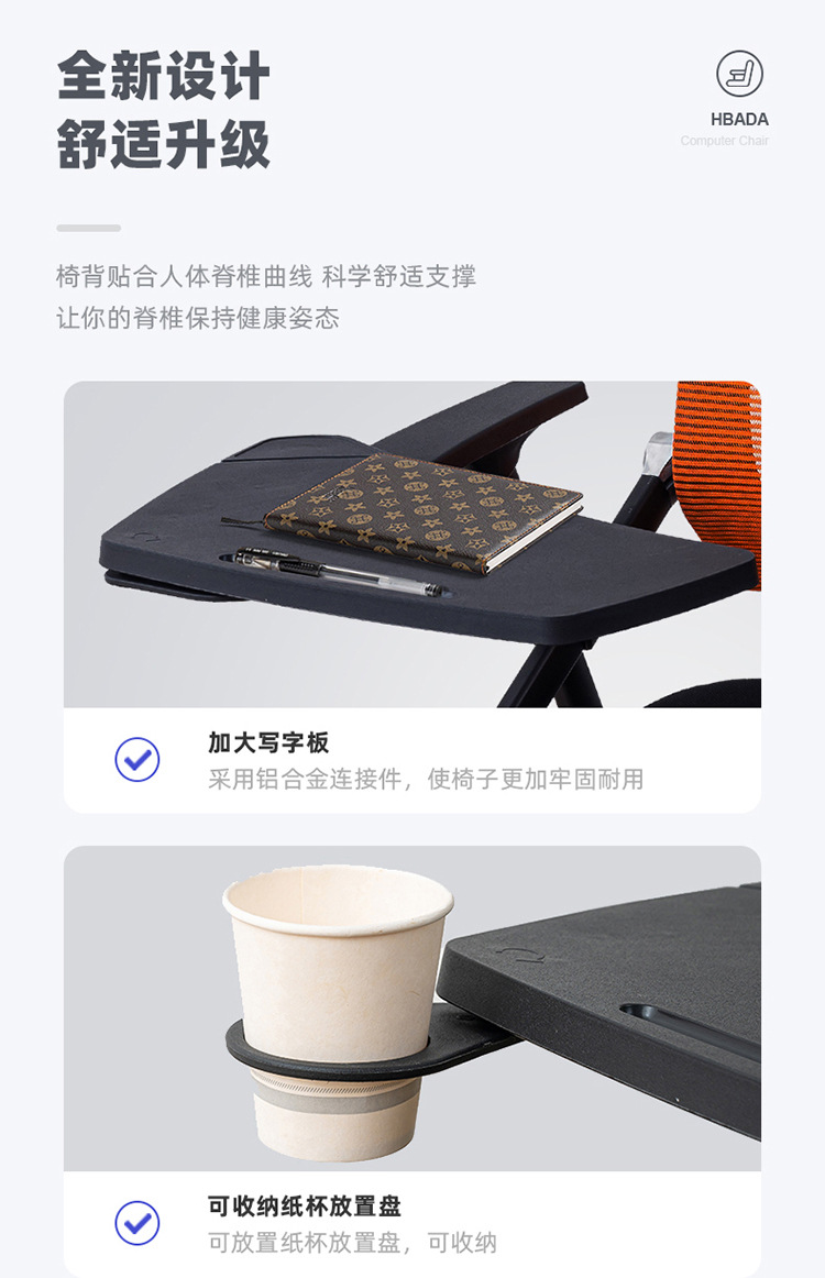 필기판이 있는 고급 쿠션 회의실 의자 바퀴 일체형 테이블과 의자가있는 테이블 보드가있는 흰색 접이식 훈련 의자스토어 가기