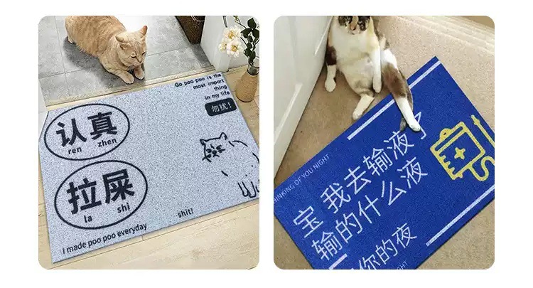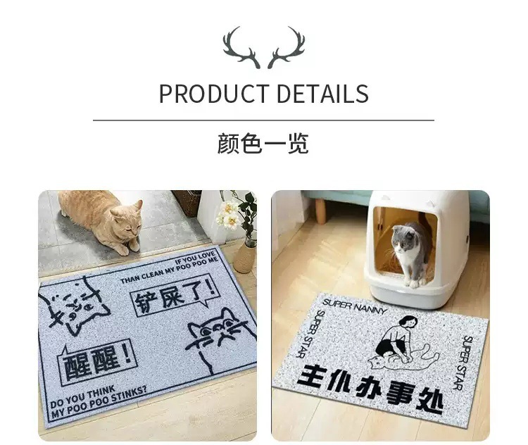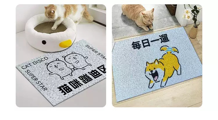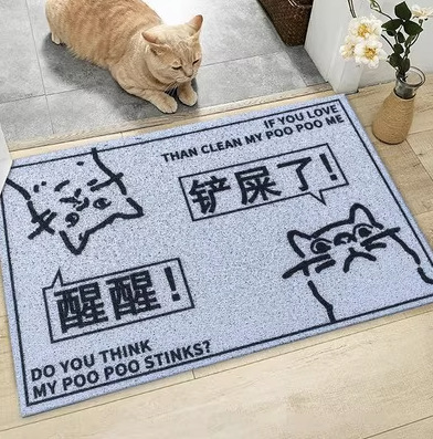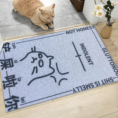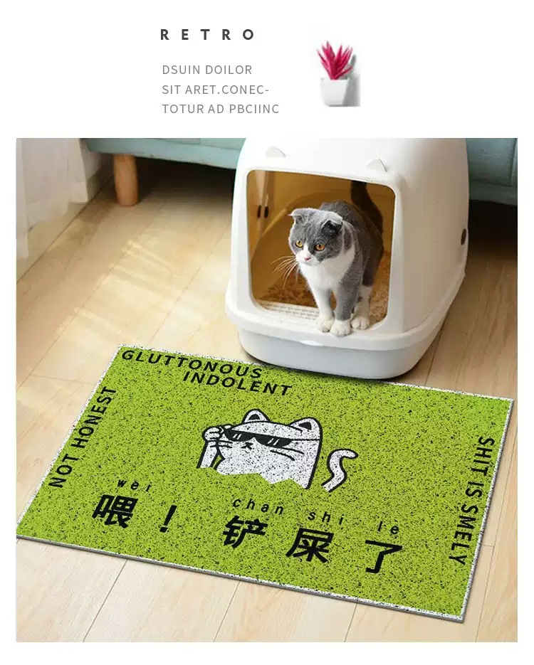 만화 텍스트 고양이 쓰레기 분지 튀김 방지 삽 애완 동물 매트 가정용 미끄럼 방지 입구 도어 매트 먼지 방지 내마모성 실크 링 바닥 매트스토어 가기