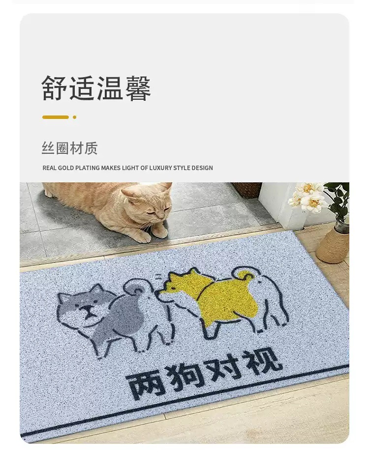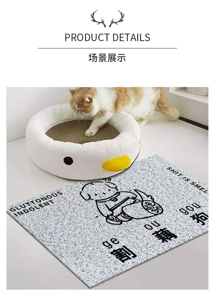 만화 텍스트 고양이 쓰레기 분지 튀김 방지 삽 애완 동물 매트 가정용 미끄럼 방지 입구 도어 매트 먼지 방지 내마모성 실크 링 바닥 매트