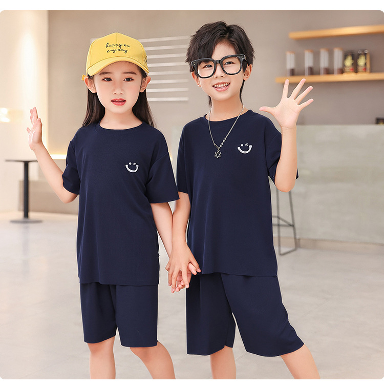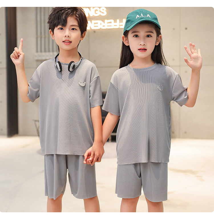 여름 새로운 소년 소녀 반팔 세트 반바지 부모-자식 투피스 세트 큰 소년 남자의 루즈한 탑 여성 캐주얼 티셔츠스토어 가기