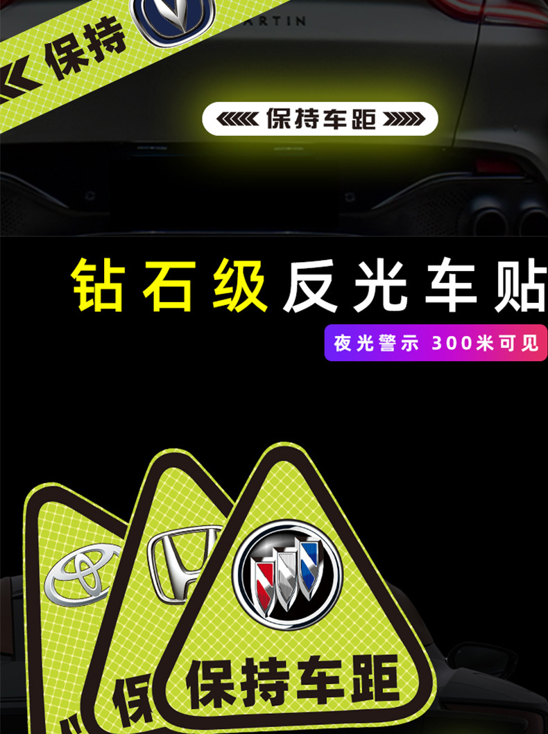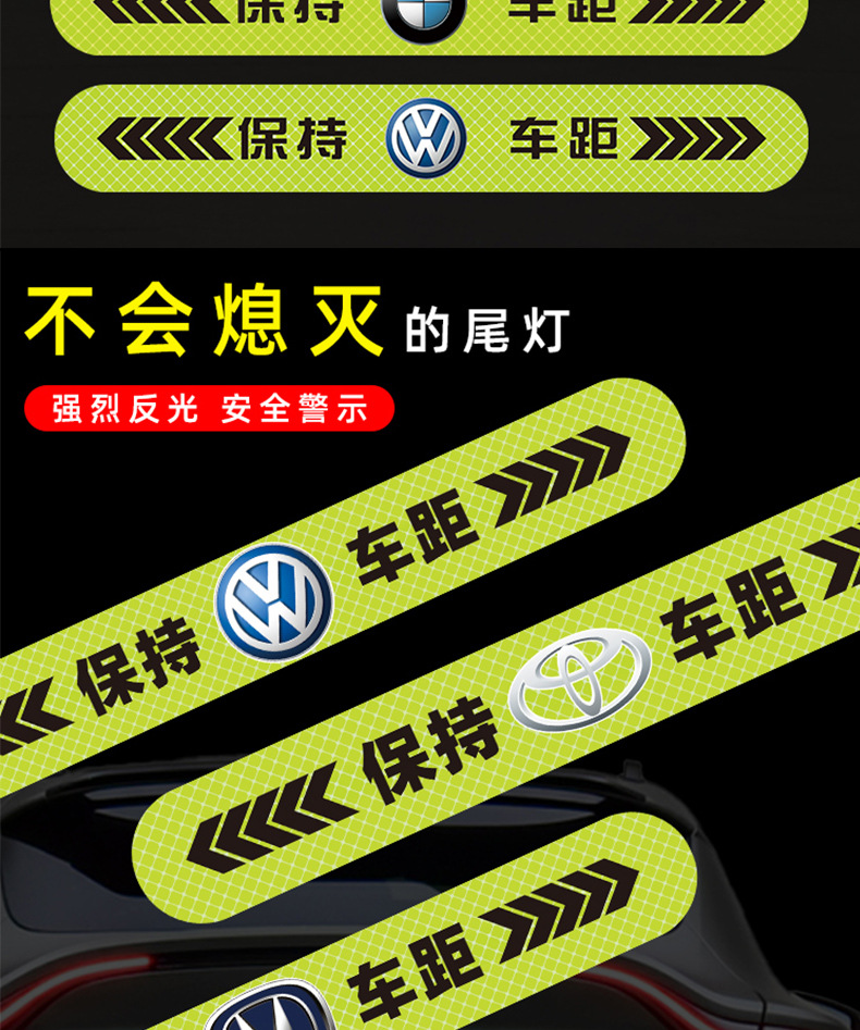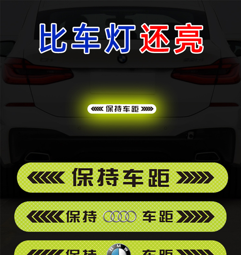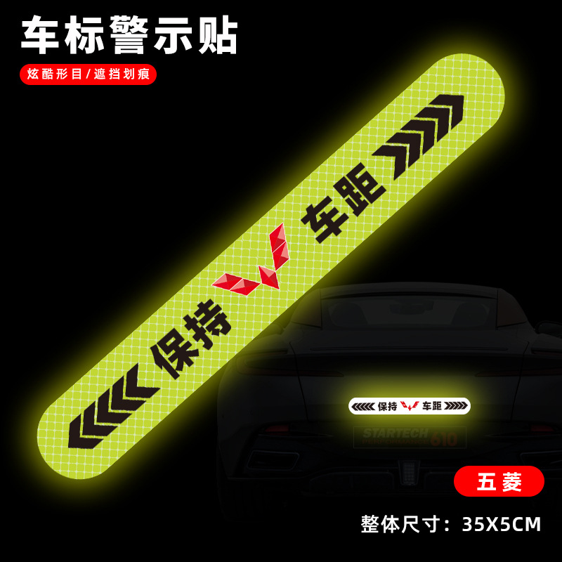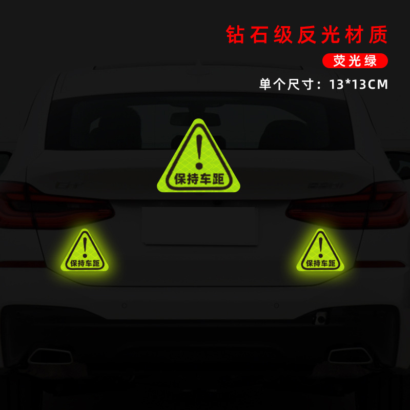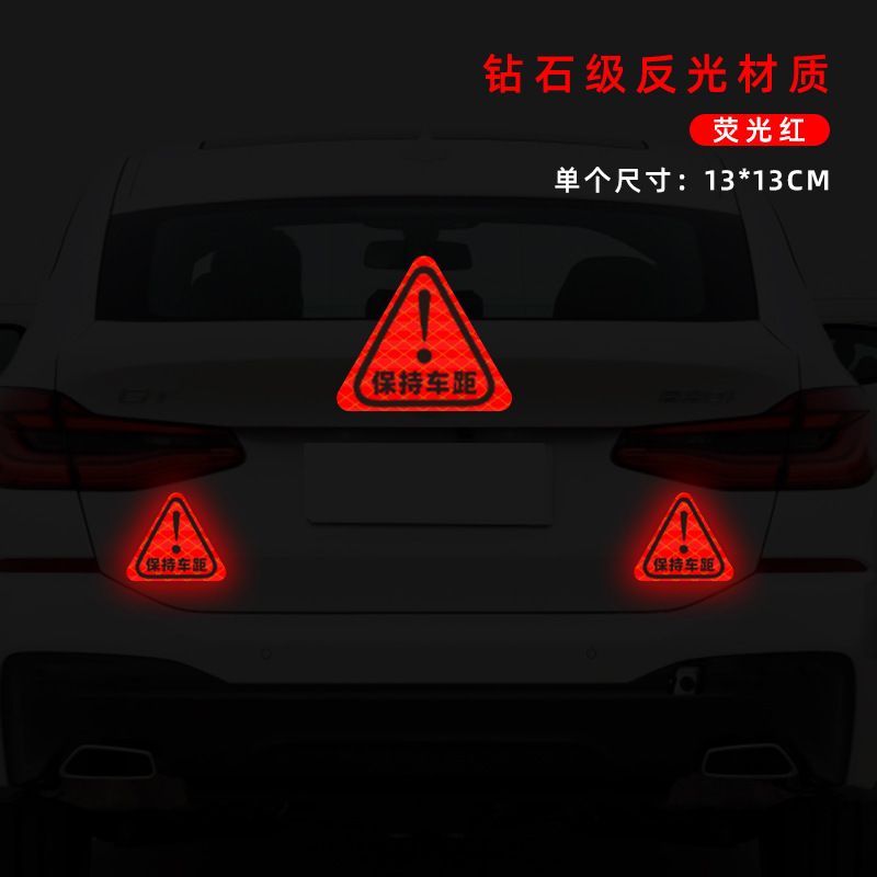 자동차와의 거리 유지 로고 삼각형 안전 경고 스티커가있는 강한 반사 스트립 야간 후방 차량 스티커 충돌 방지