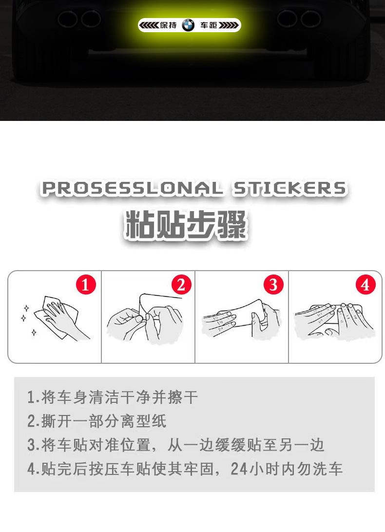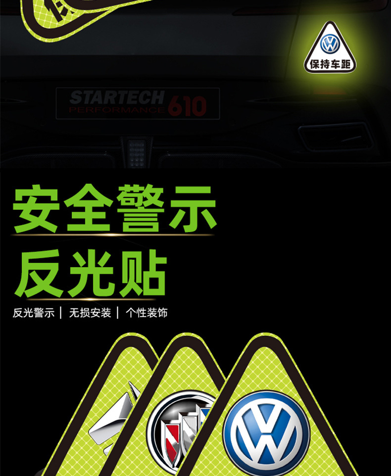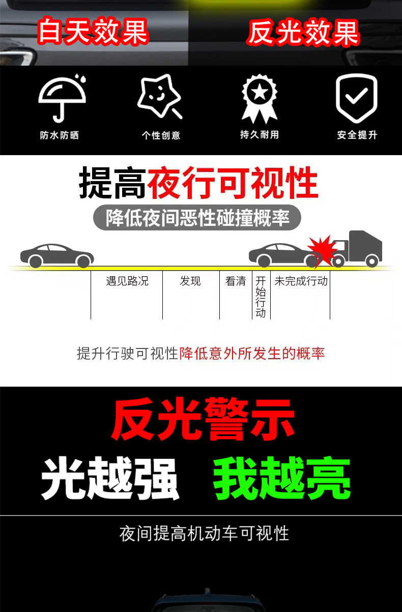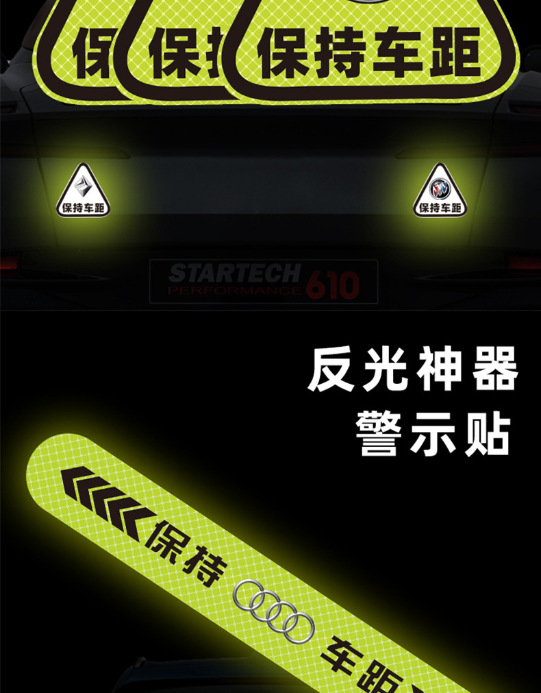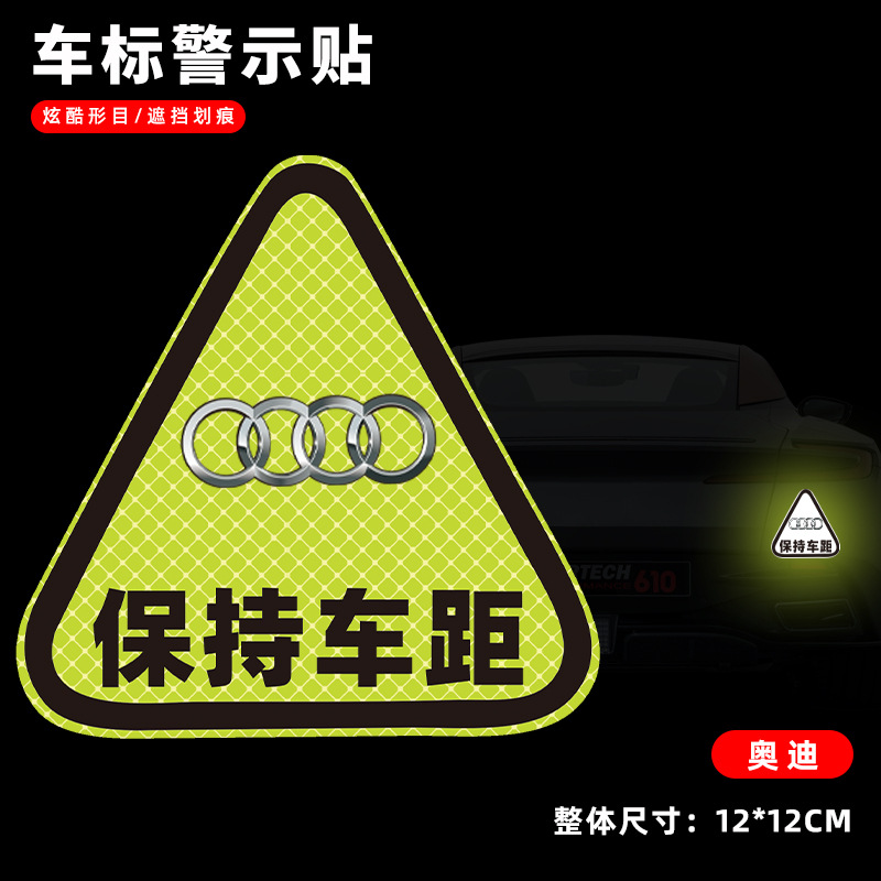 자동차와의 거리 유지 로고 삼각형 안전 경고 스티커가있는 강한 반사 스트립 야간 후방 차량 스티커 충돌 방지