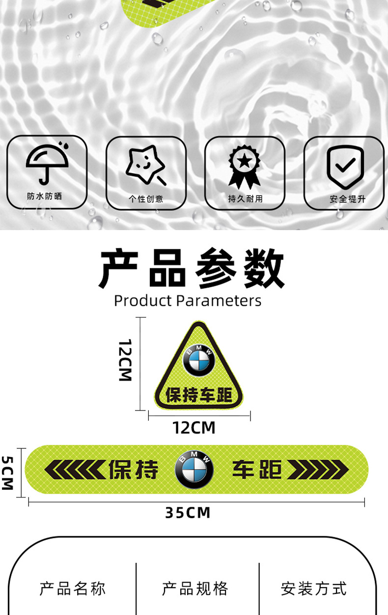 자동차와의 거리 유지 로고 삼각형 안전 경고 스티커가있는 강한 반사 스트립 야간 후방 차량 스티커 충돌 방지스토어 가기