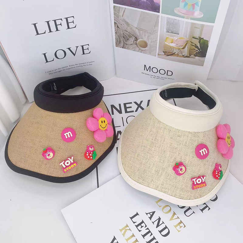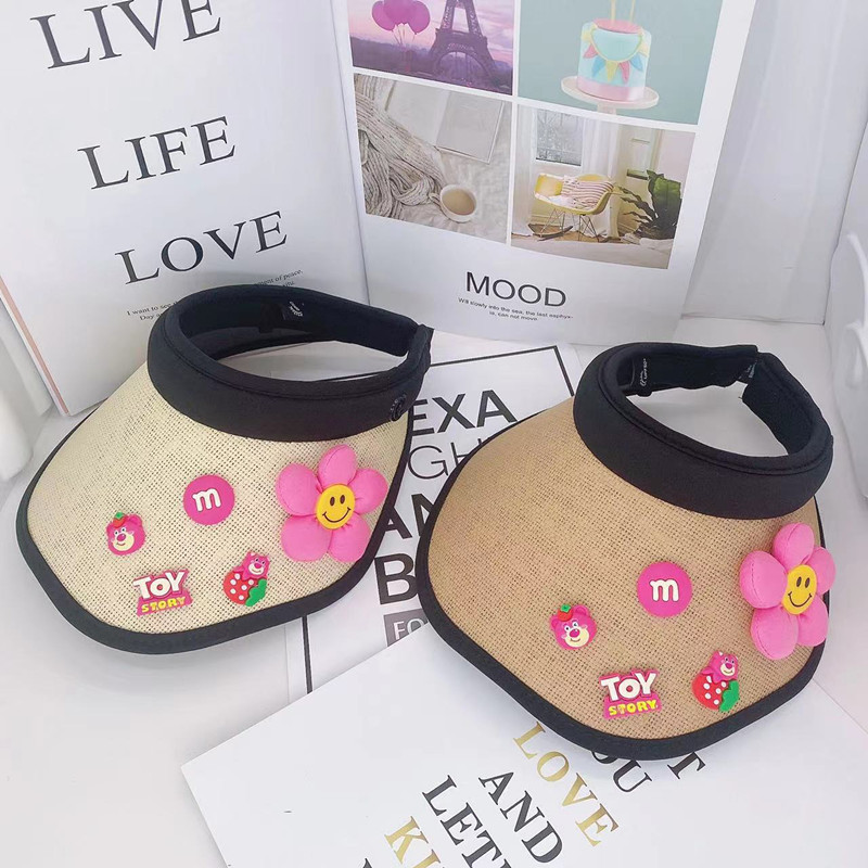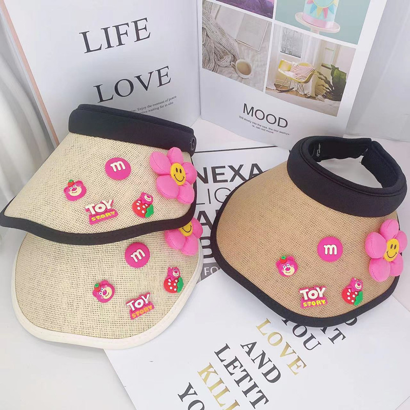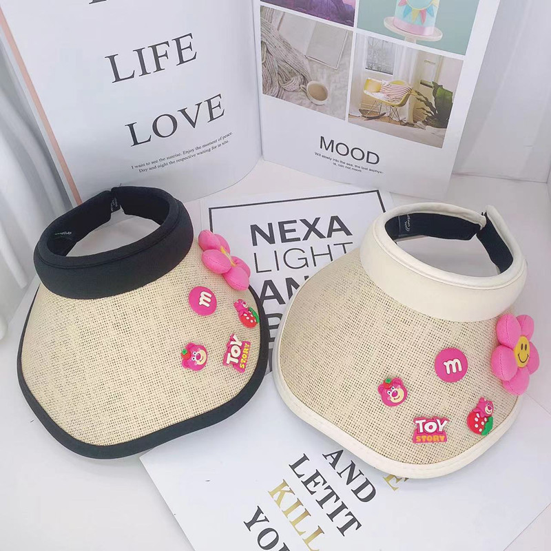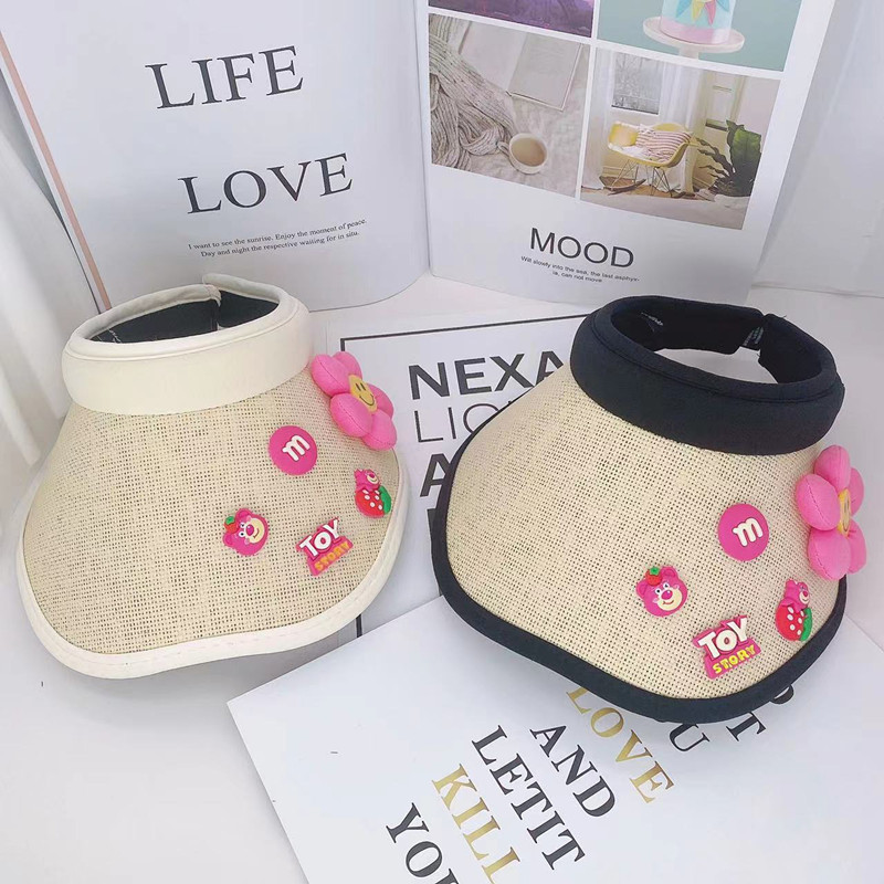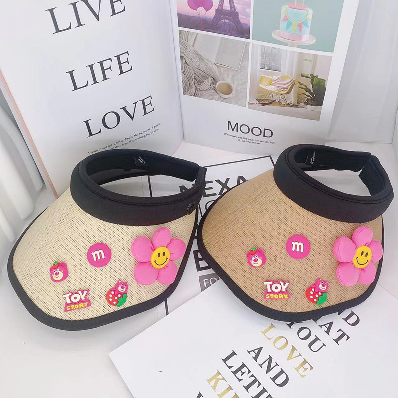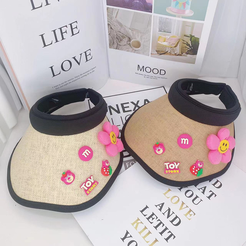 어린이 태양 보호 부모-자식 여름 소녀 빈 탑 모자 UV 보호 만화 차양 밀짚 모자 헤어 밴드 비치 태양 모자