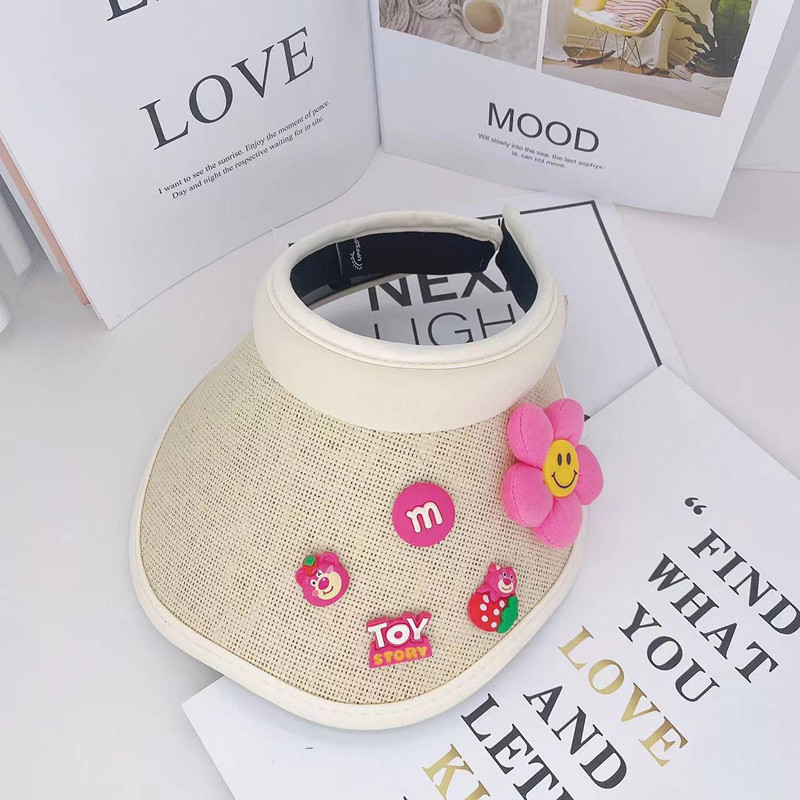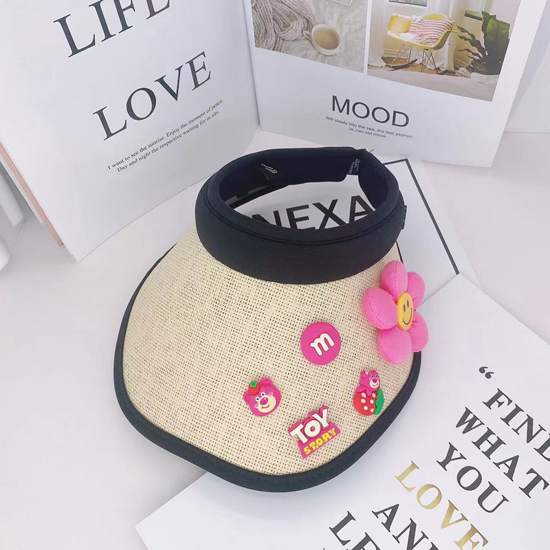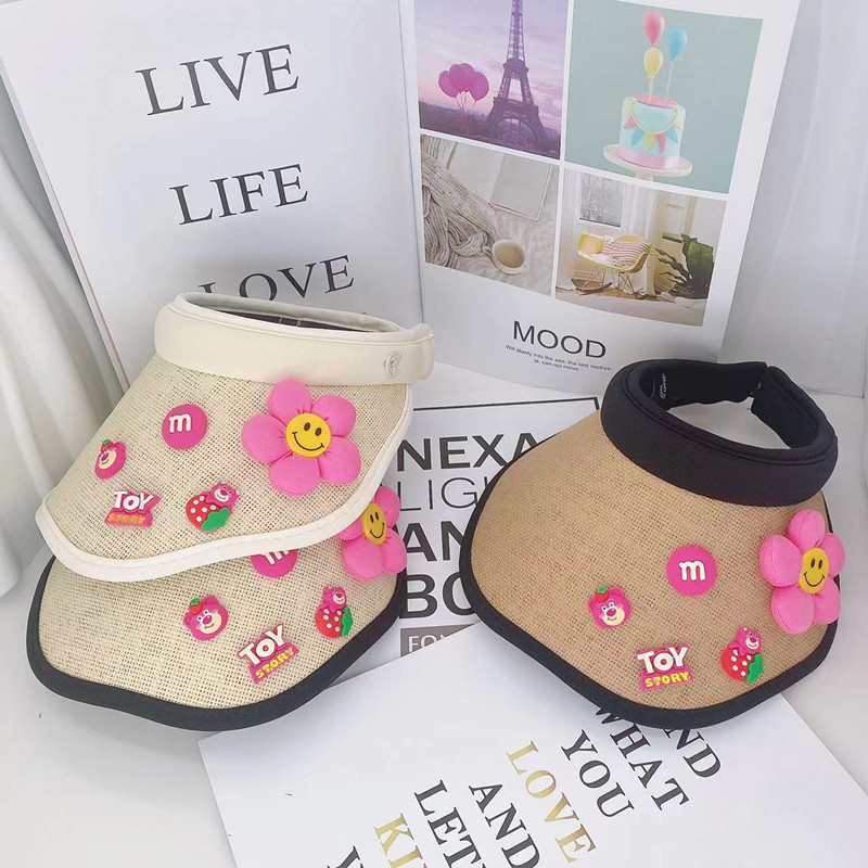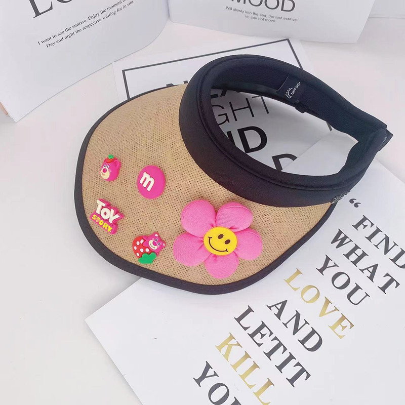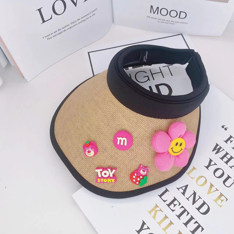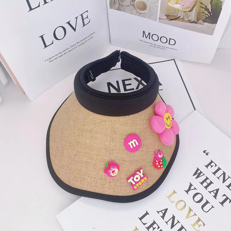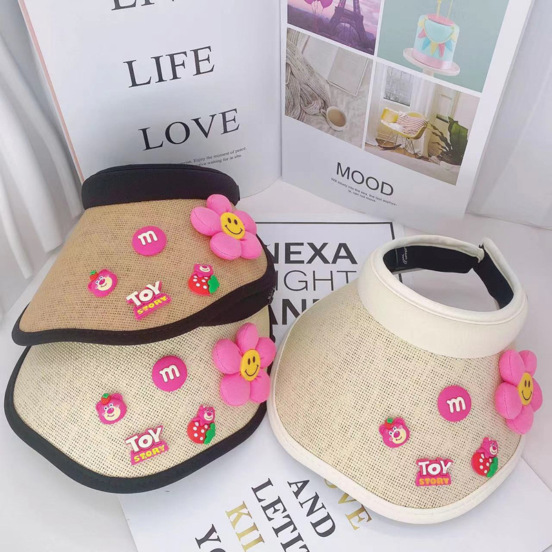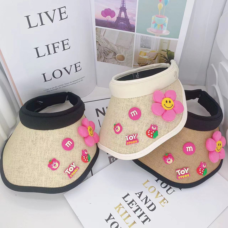 어린이 태양 보호 부모-자식 여름 소녀 빈 탑 모자 UV 보호 만화 차양 밀짚 모자 헤어 밴드 비치 태양 모자
