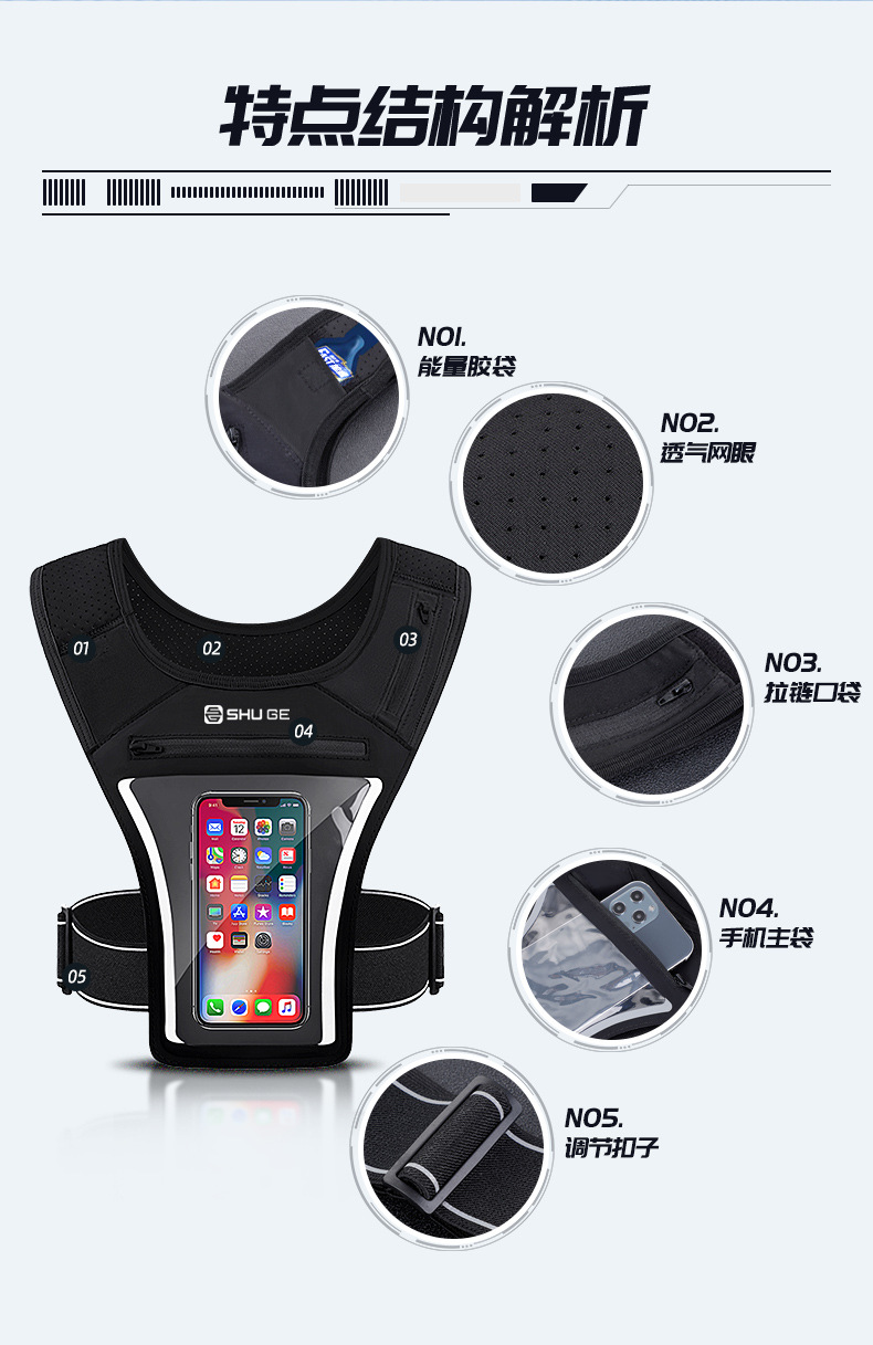 새로운 다기능 스포츠 백팩 야외 러닝 휴대 전화 가방 조끼 통기성 등산 스포츠 사이클링 가슴 가방