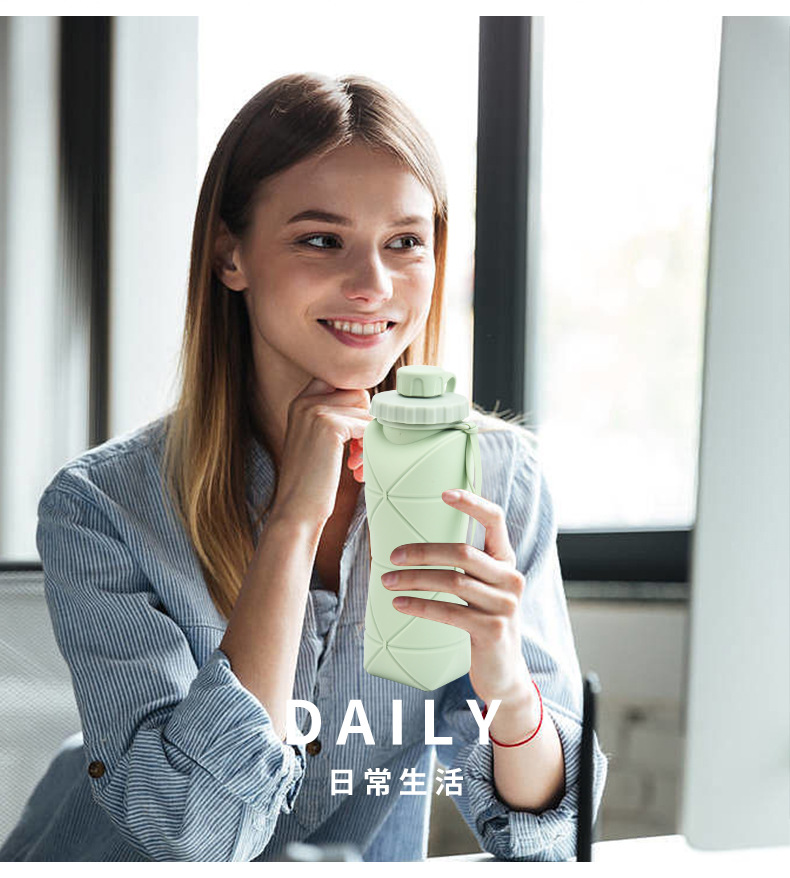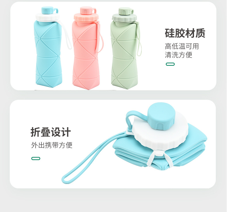 실리콘 접는 물 컵 대용량 야외 스포츠 물병 휴대용 실리콘 물 컵 여행 컵 승마 물병